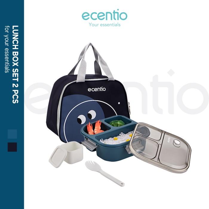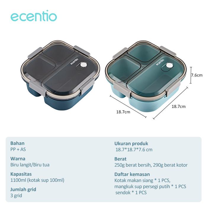 PROMO 8.8 ECENTIO KOTAK MAKAN 3 GRID TEMPAT MAKAN BPA FREE LUNCH BOX SET BIRU MUDA
