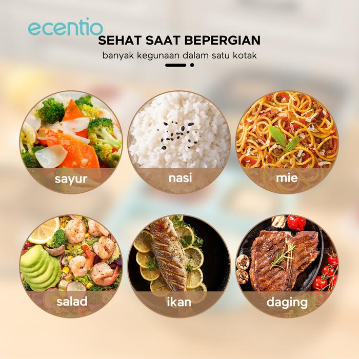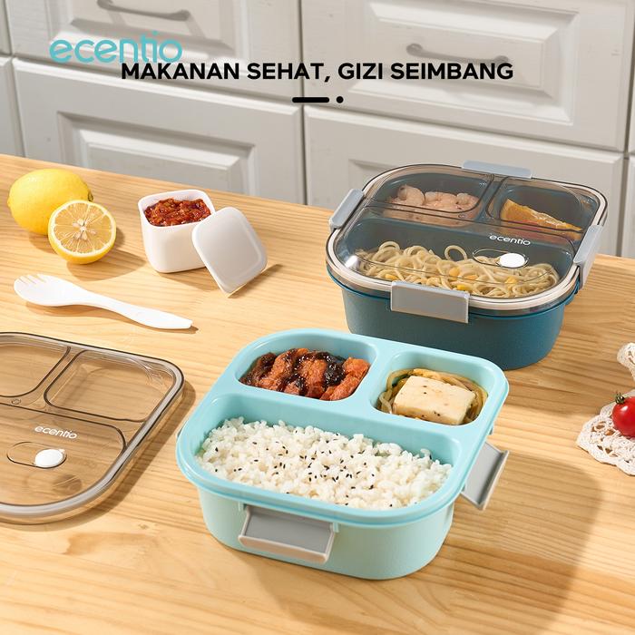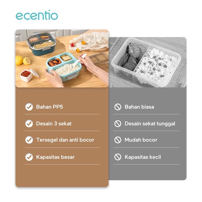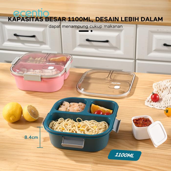 PROMO 8.8 ECENTIO ANTI TUMPAH 1100ML TEMPAT BEKAL 3 GRID KOTAK MAKAN WADAH BEKAL KOTAK SUP 100ML BPA FREECF BIRU