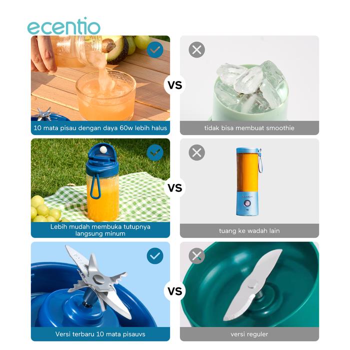 PROMO 8.8 ECENTIO PORTABLE BLENDER 10 JUICER KACA TEBAL 2 CUP MINI PORTABLE DENGAN SEDOTAN 380ML380ML