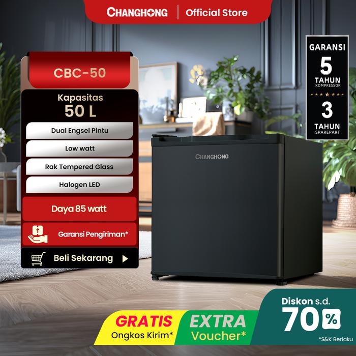 FLASH SALE CHANGHONG KULKAS MINI ANAK KOS LEMARI ES MINI BAR REFRIGERATOR MINI KAPASITAS 50 LITER PENDINGIN MINUMAN PINTU FLEKSIBEL HEMAT LISTRIK CBC 50 BLACK HITAM NO NEED