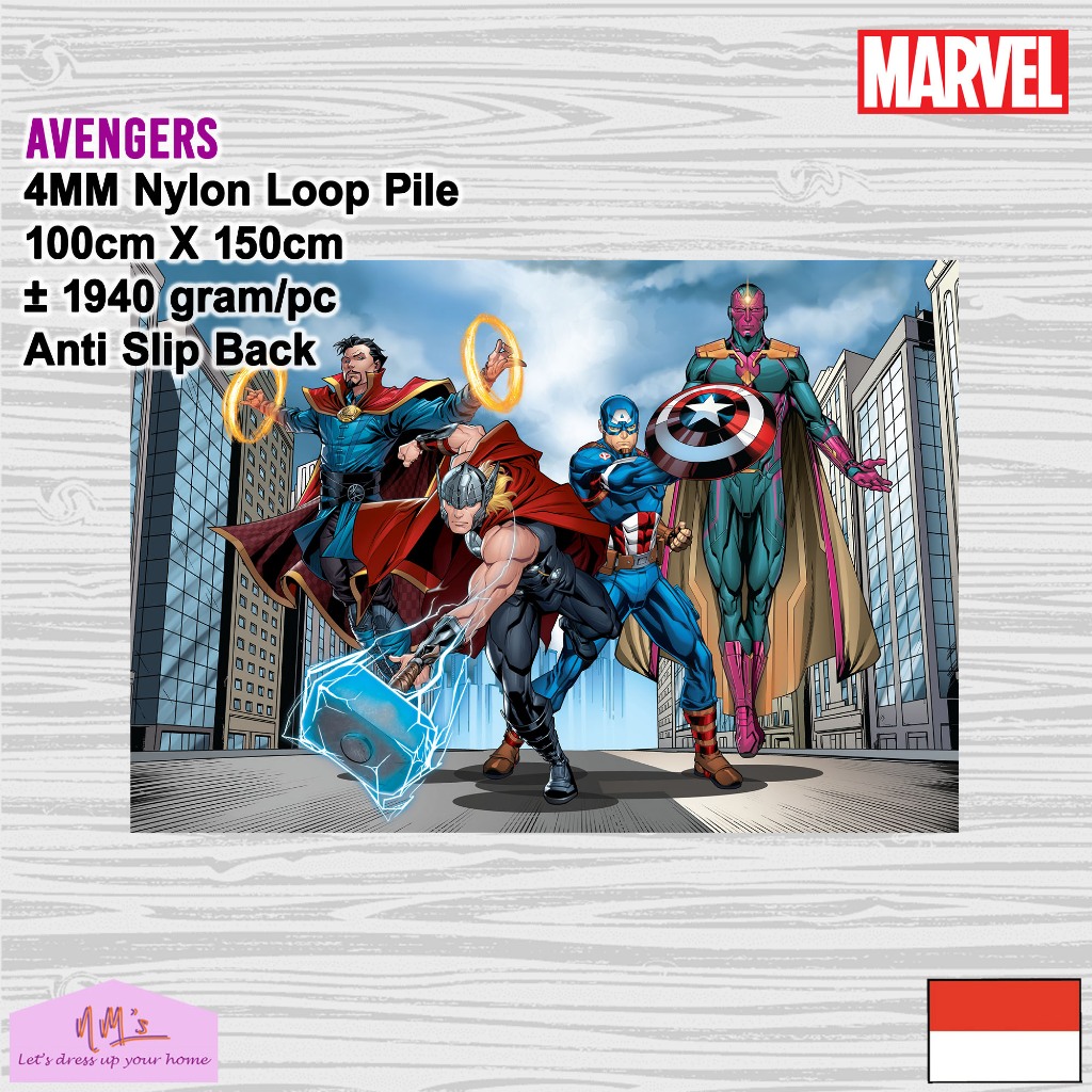 Disney Marvel Official Merchandise Avengers karpet playmat anak 100 cm x 150 cm anti slip motif kartun superhero karakte