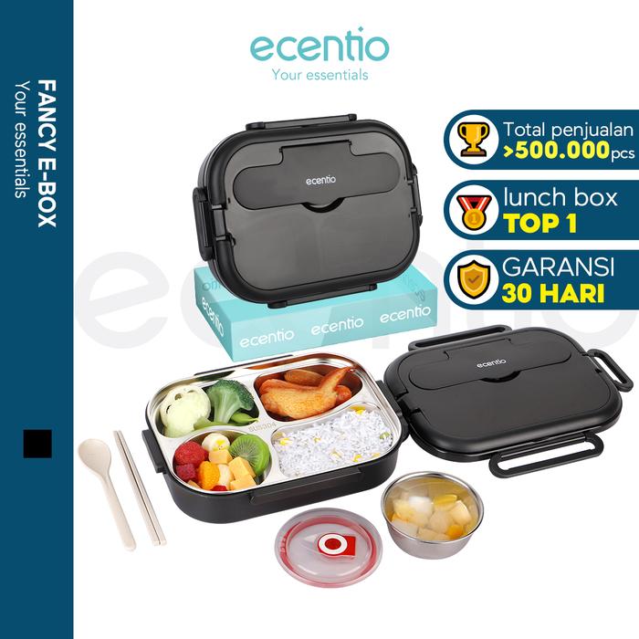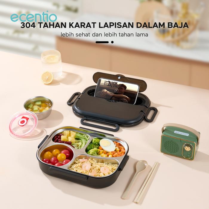 PROMO 8.8 ECENTIO 1L KOTAK MAKAN STAINLESS 304 TEMPAT MAKAN LUNCH BOX 4SEKAT