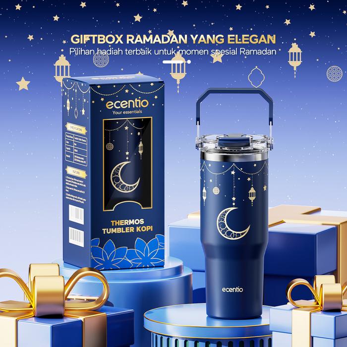 PROMO 8.8 【RAMADAN EXCLUSIVE】ECENTIO TUMBLER STAINLESS VACUUM 900ML PORTABLE THERMOS BOTOL MINUM BESAR PREFERRED RAMADAN GIFT FOOD CONTAINER