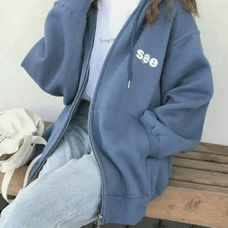 SEE ZIPPER HOODIE JAKET - HOODIE POLOS JAKET OVERSIZE