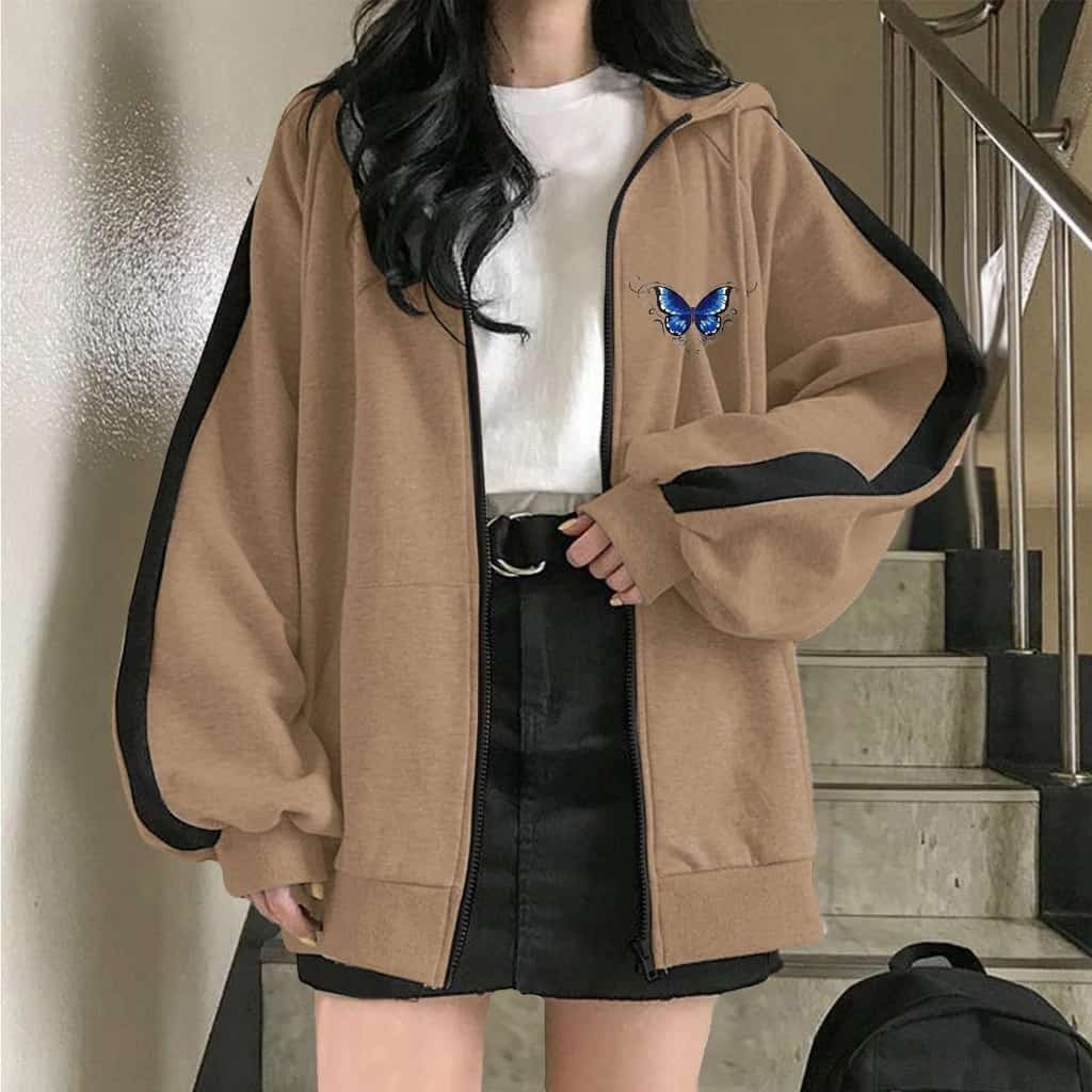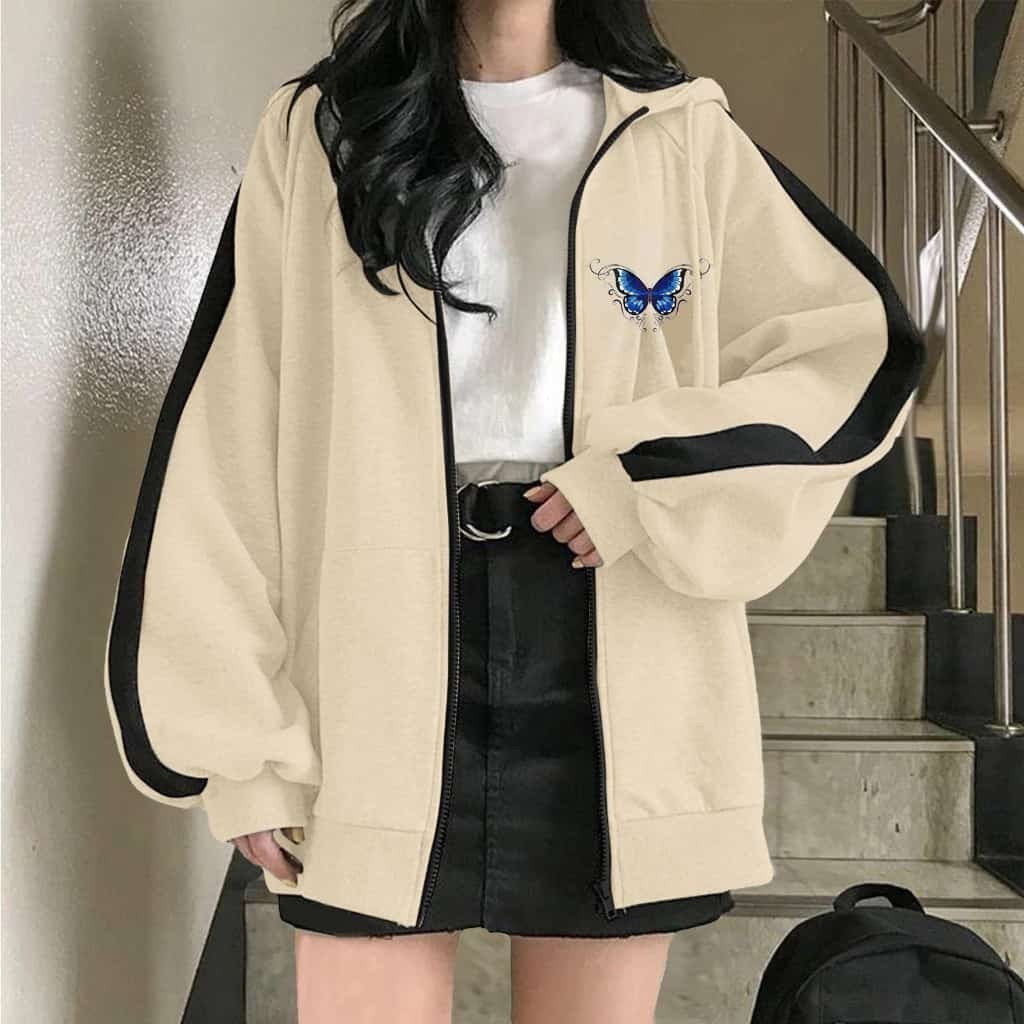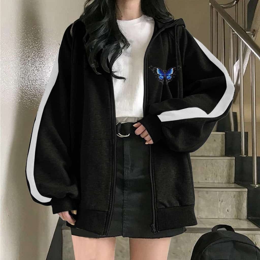 SC. SLEEVE BUTTERFLY ZIPPER HOODIE OUTERWEAR JAKET HOODIE MATT FLEECE SABLON TEBAL PREMIUM OOTD KOREAN STYLE