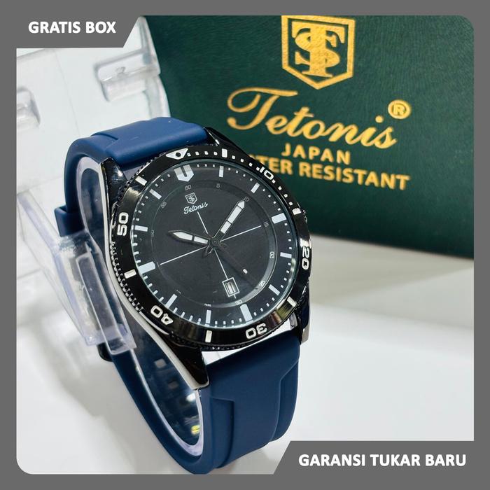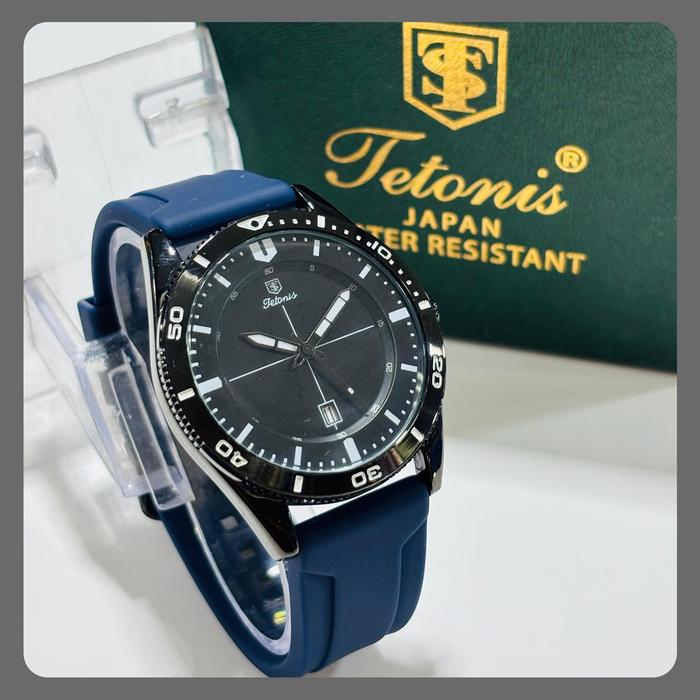 TERLARIS JAM TANGAN TETONIS004 TS8018 RUBBER CASE HITAM JAM TANGAN PRIA JAM TANGAN ANAOG