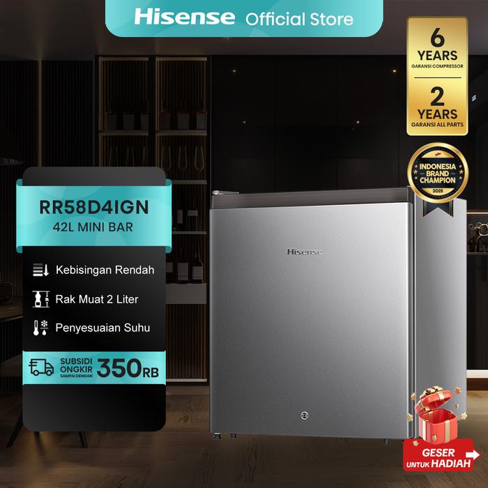 FLASH SALE HISENSERR58D4IGNKULKAS MINIKAPASITAS 42L MINI BARTINGKAT KEBISINGAN RENDAH 2LITER RAK MUAT BOTOL UKURANALAT PENGUKUR SUHU DAPAT DISESUAIKANPENDINGIN TERPISAHPINTU REVERSIBELSPACE FRIENDLY