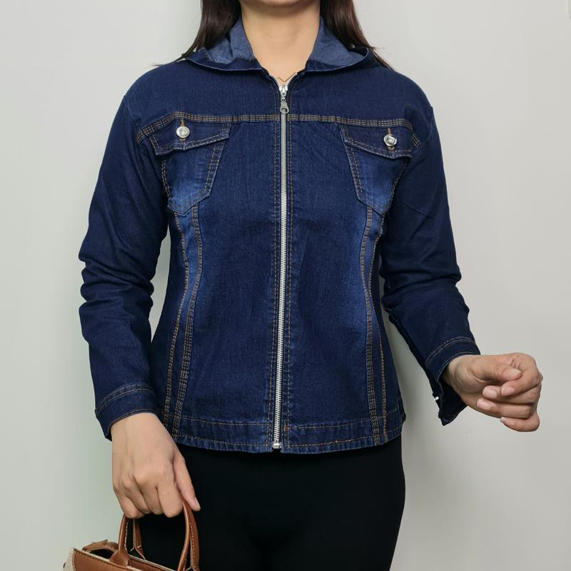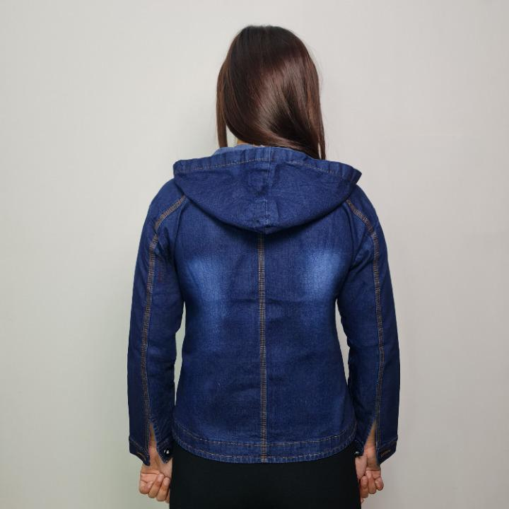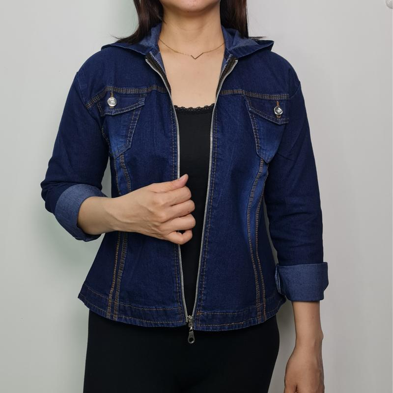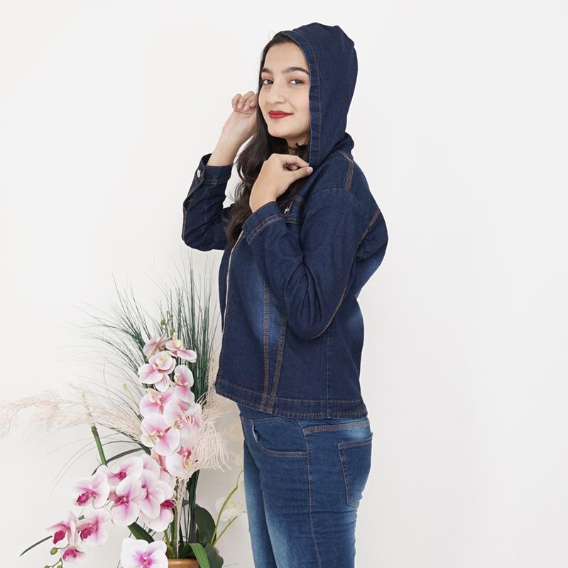 MINOLA JAKET WANITA JEANS HOODIE NATHALIE TUDUNG RESLETING/DENIM MELAR NAVY CEWE