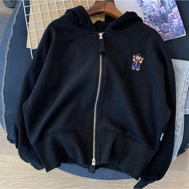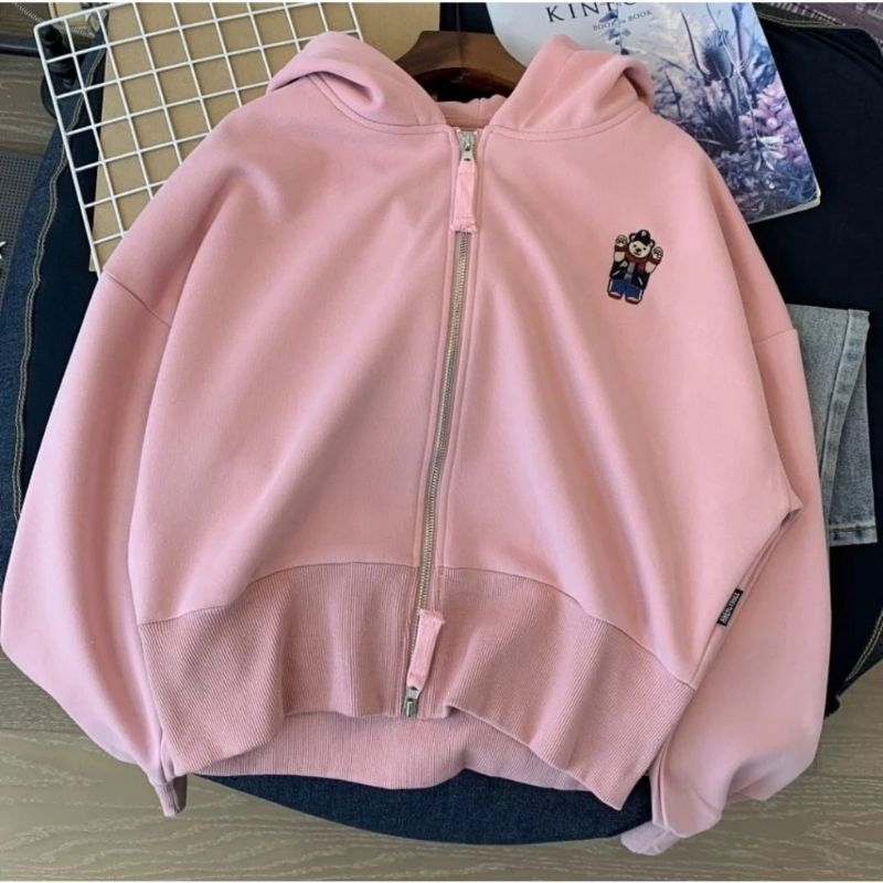 ASEO.OFFICIAL . JAKET TEACHER BEAR DOUBLE ZIPPER CROP HOODIE - JAKET WANITA CROOPE OVERSIZE KOREAN STYLE KEKINIAN