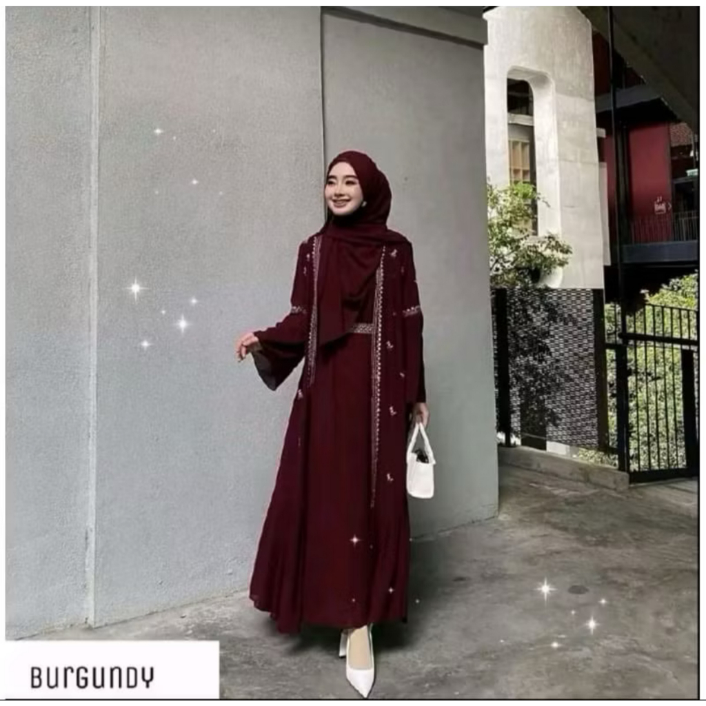 Gamis Abaya Bordir Premium Terbaru 2025 Safwa Abaya Ceruty Babydoll Aplikasi Bordir Simple Elegan