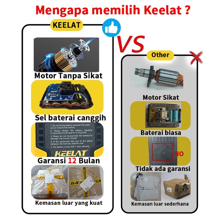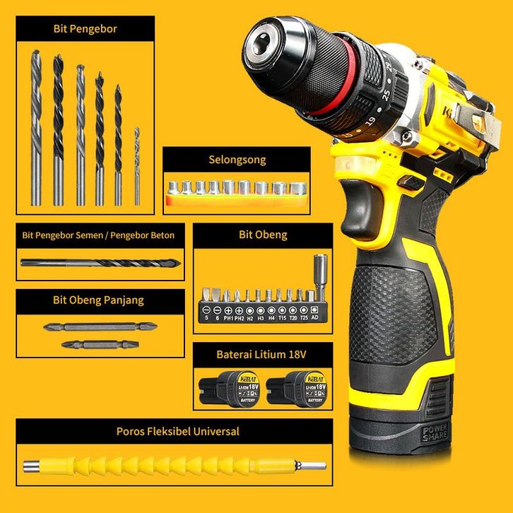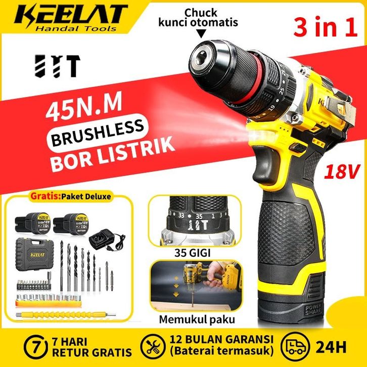 Mesin Bor Baterai - Keelat Kcd013 45nm Bor Listrik 3 in 1 Bor Cordless Drill Bor Tangan Multifunction Bor Listrik Set