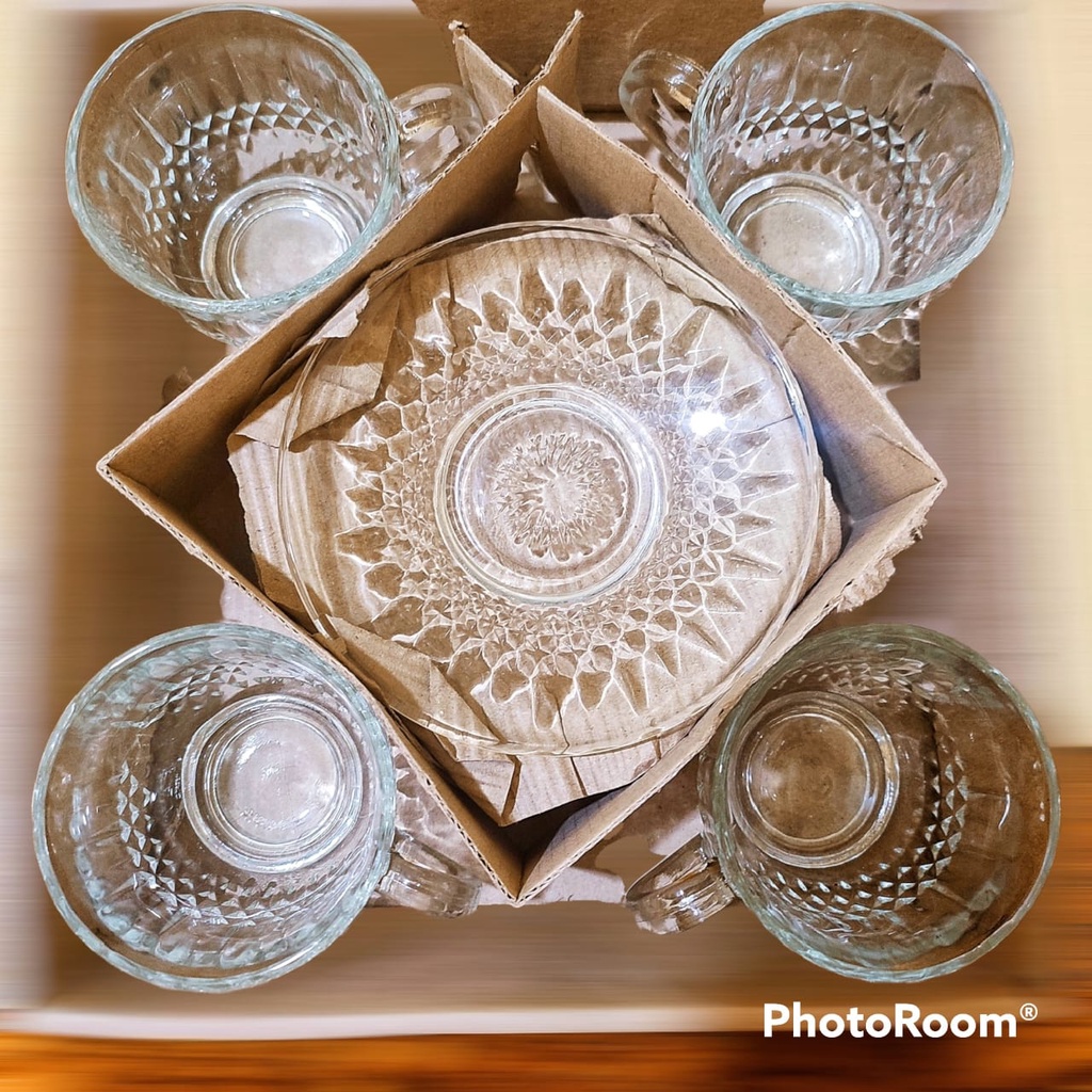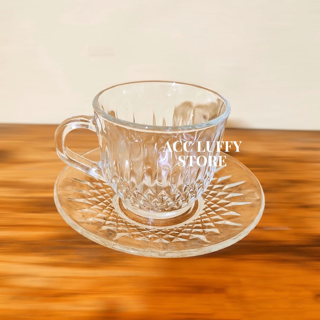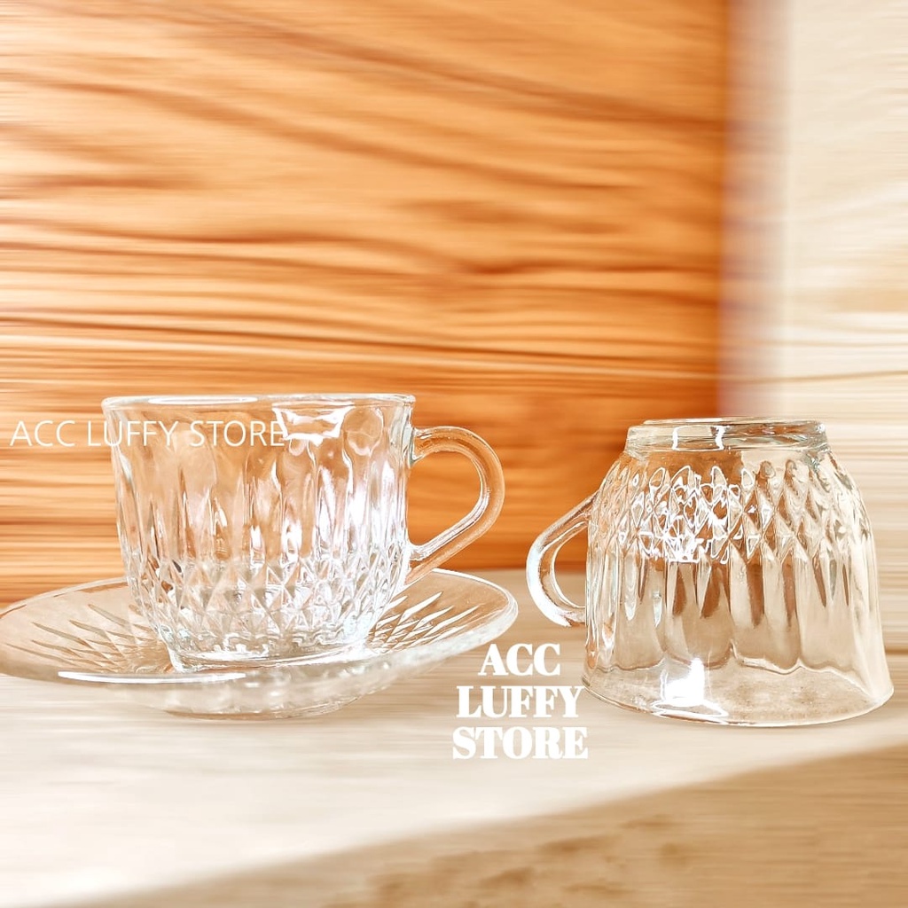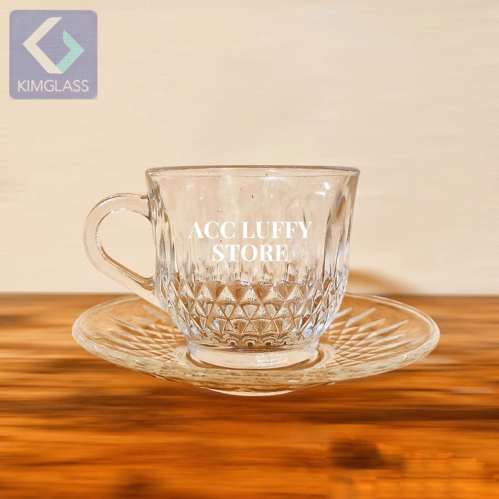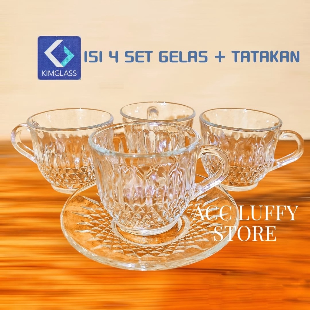 GELAS KACA 1 SET BERKUALITAS - CANGKIR KOPI DAN WADAH 1 SET - CANGKIR KACA - GELAS KACA KIMGLAS BERKLUALITAS