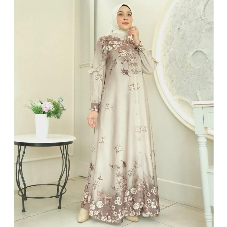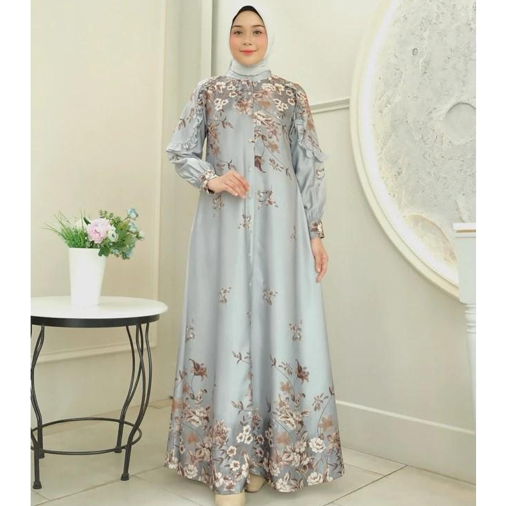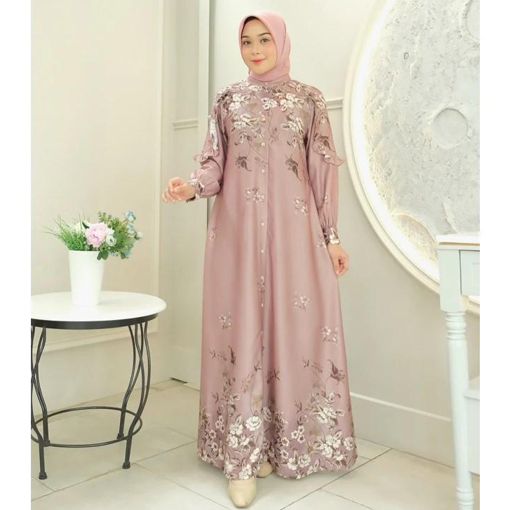 Gamis Wanita Muslim Rekomendasi Baju Lebaran Dress Premium Motif Bunga Lengan Panjang Elegan