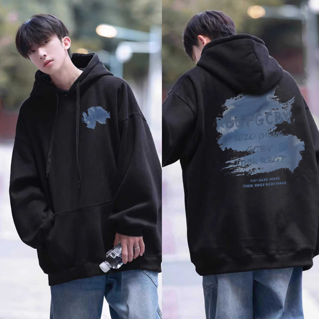 NASA IDOL JAKET SWEATER HOODIE BOXY PRIA OVERSIZE HITAM LENGAN PANJANG C176