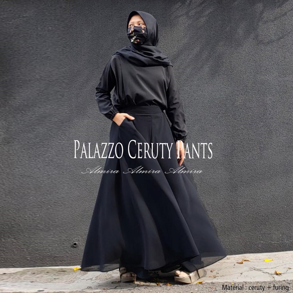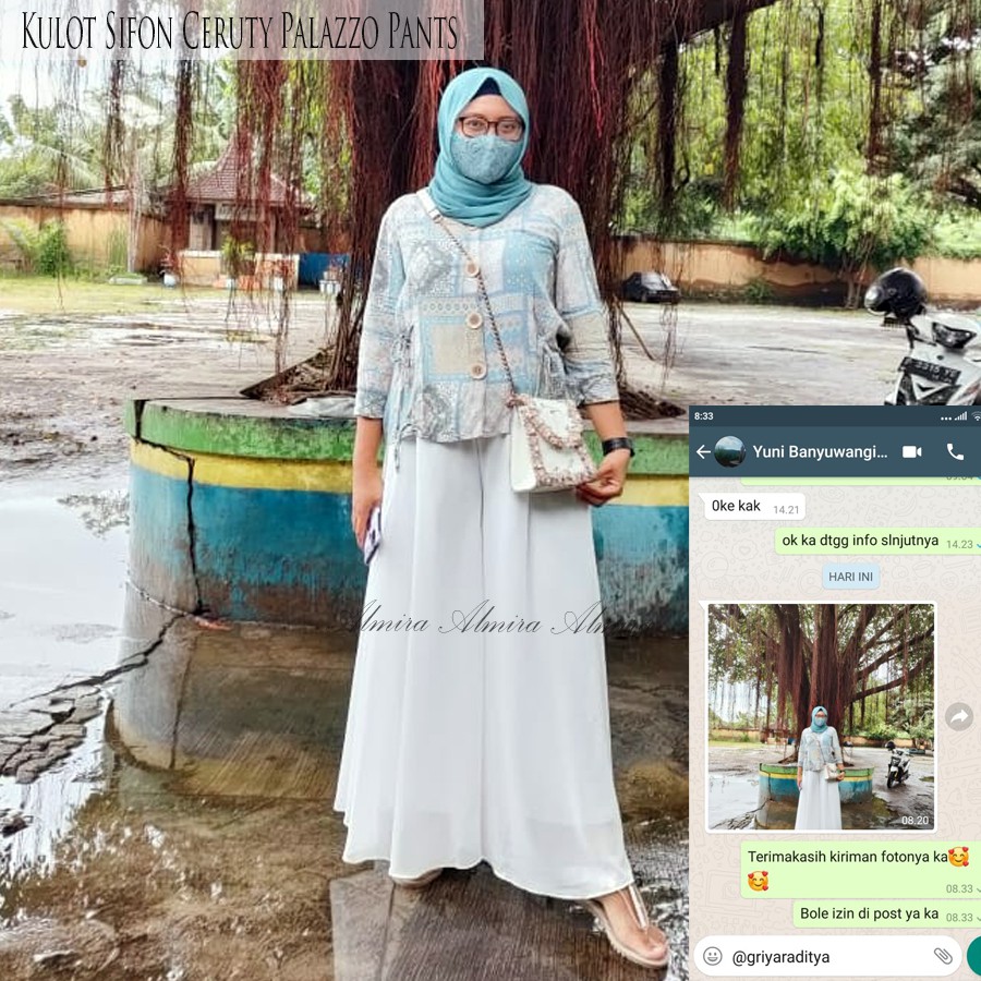 Celana Kulot Panjang Payung Lebar Wanita Muslimah Polos Palazzo Sifon Chiffon Ceruty Pants Almira