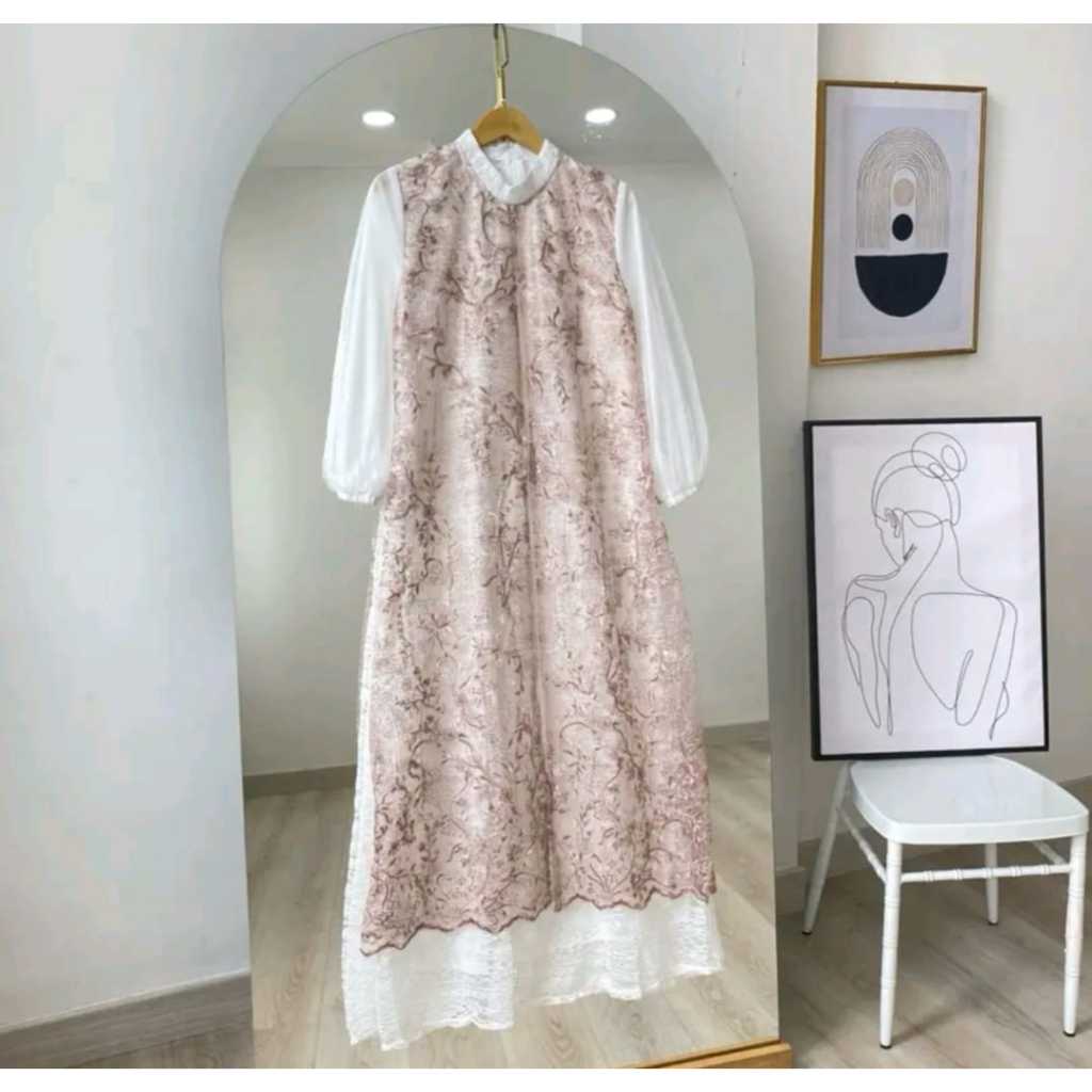 Baju Lebaran Wanita Terbaru Flower Dress BO Size M L XL XXL XXXL LD 100-130 CM PB 140 CM Bahan Brukat Malika Mixe B