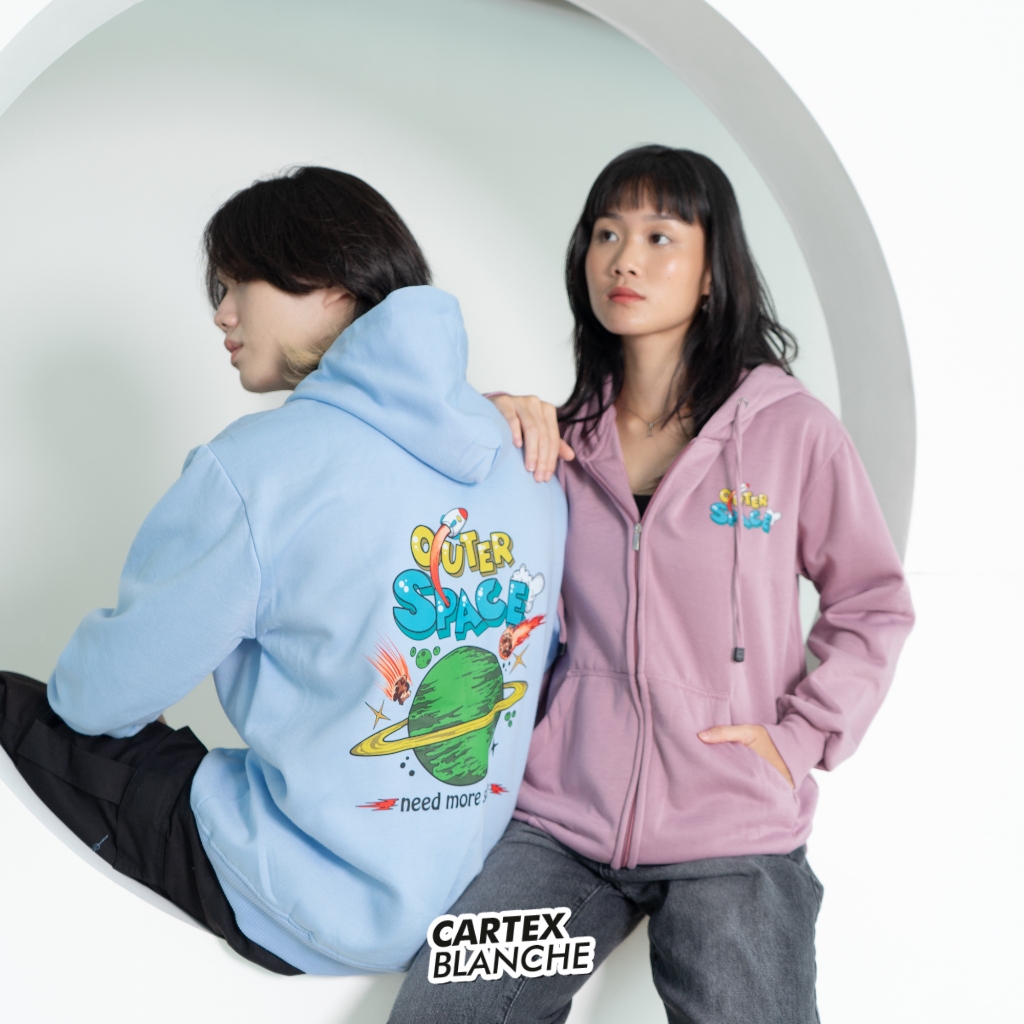 CARTEXBLANCHE NEED MORE SPACE JAKET HOODIE ZIPPER SABLON UNISEX WANITA - PRIA SIZE M - XXL