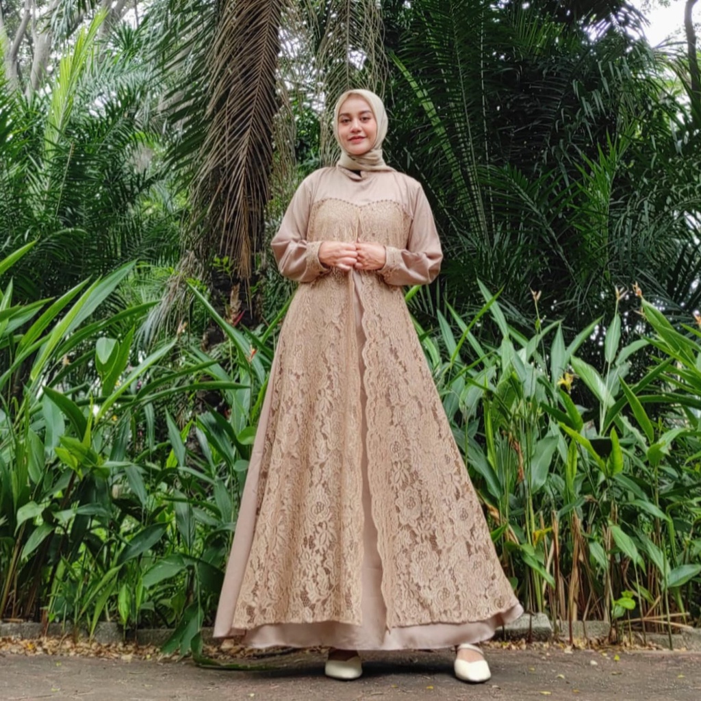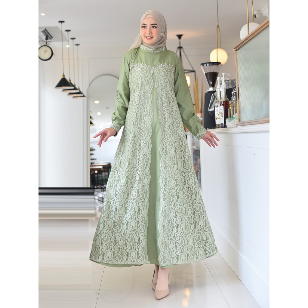Gamis JUMBO Brukat Sabrina Maxi Dress Bahan Toyobo Original Gamis Kondangan Mewah Pesta Dengan Payet Mutiara Adem U
