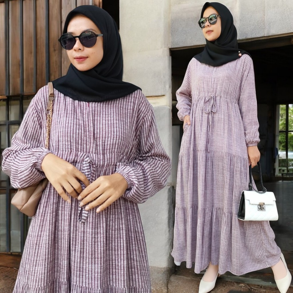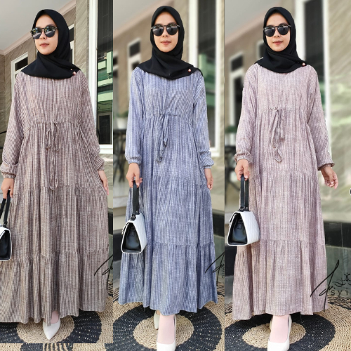 Gamis Rayon Motif Bunga Salur/ Gamis Rayon Viscos