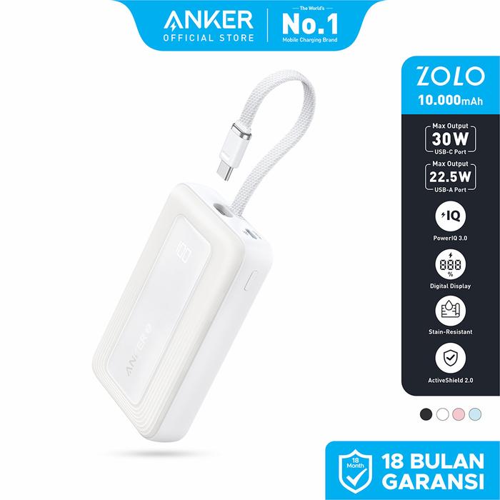 PROMO 8.8 ANKER ZOLO POWER BANK 30W 10000MAH WITH CABEL TYPE C FAST CHARGING PD 30 A1688 10K BL C CABLE