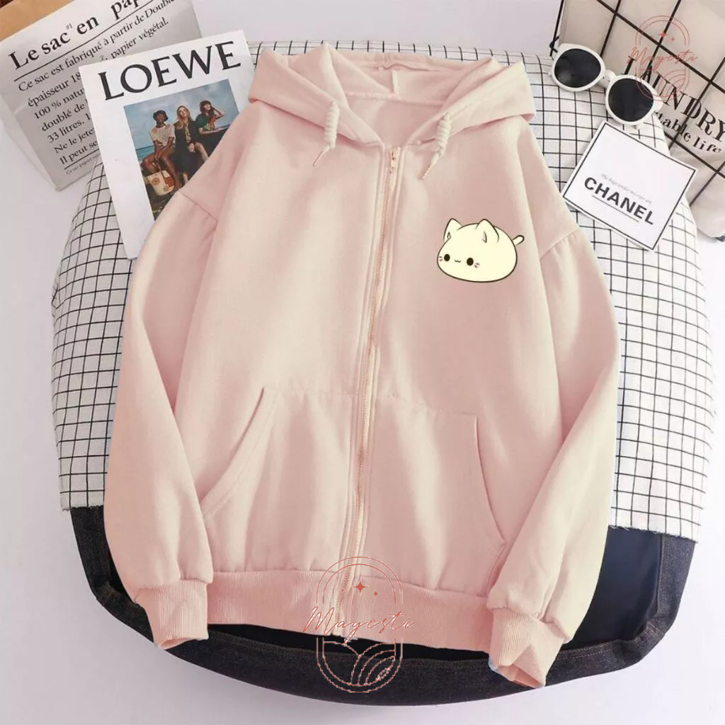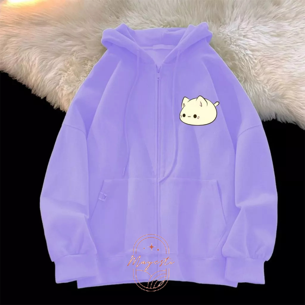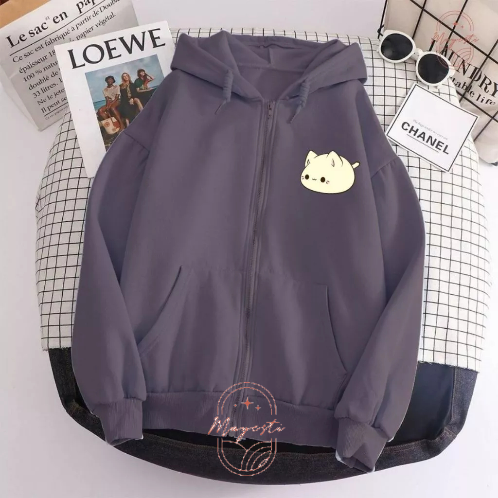 JAKET ZIPPER HOODIE CUTE CAT LUCU CEWEK COUPLE BESTIE L XL XXL REMAJA D3W4SA BAHAN FLEECE MOTIF CUTE CAT