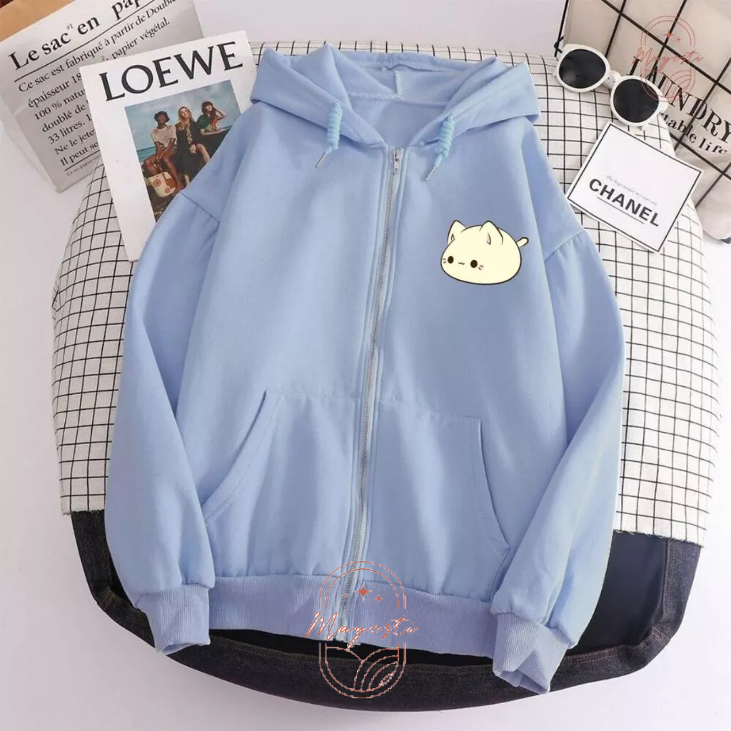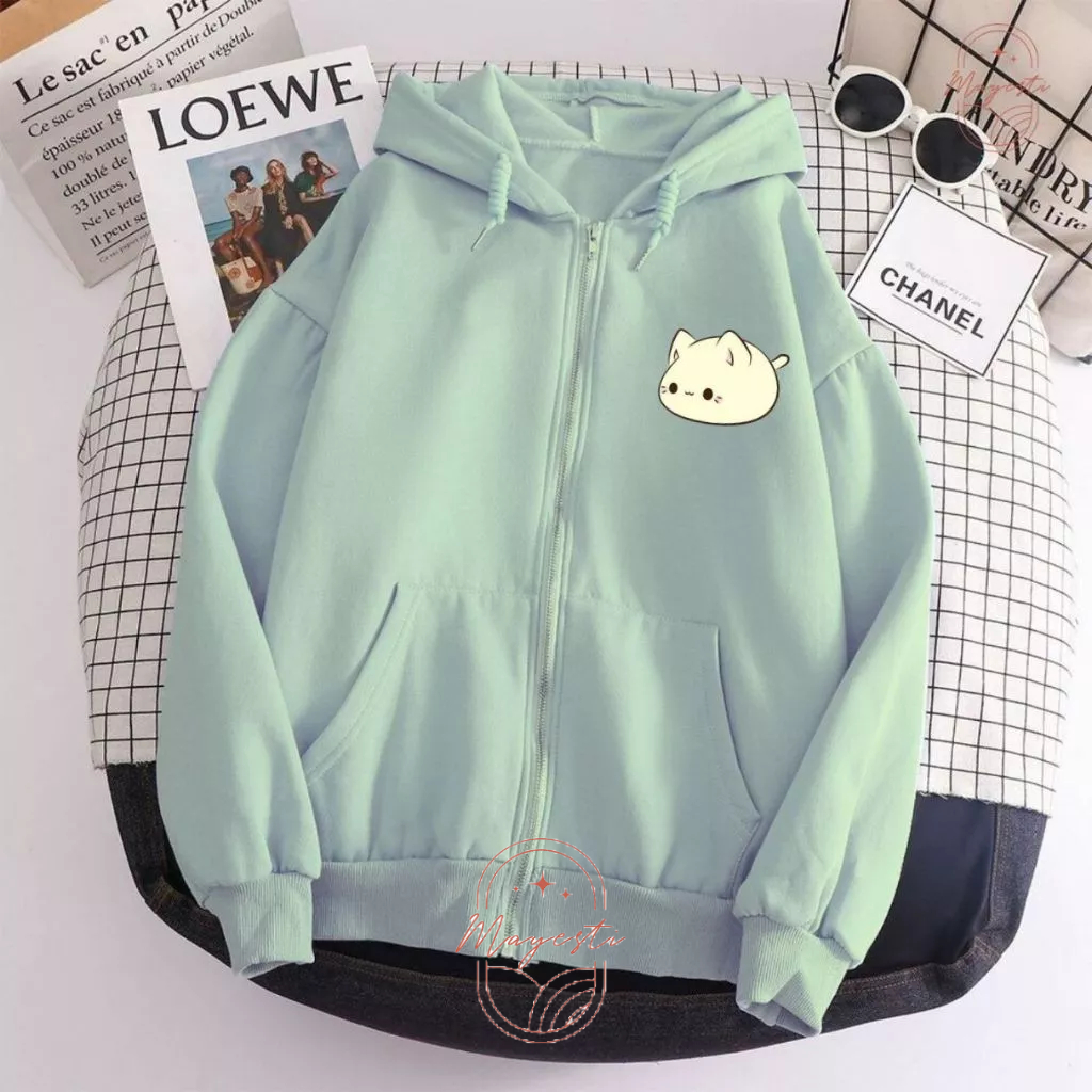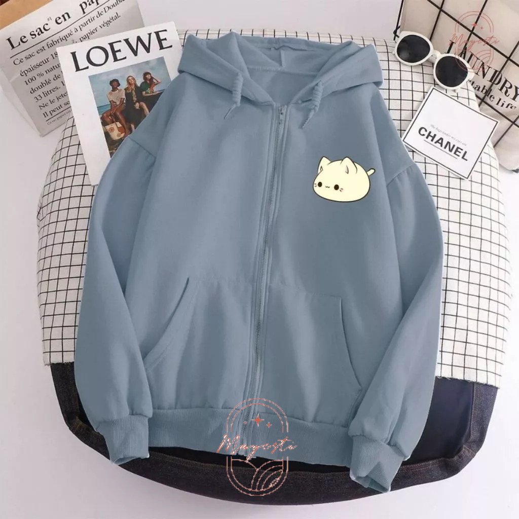 JAKET ZIPPER HOODIE CUTE CAT LUCU CEWEK COUPLE BESTIE L XL XXL REMAJA D3W4SA BAHAN FLEECE MOTIF CUTE CAT