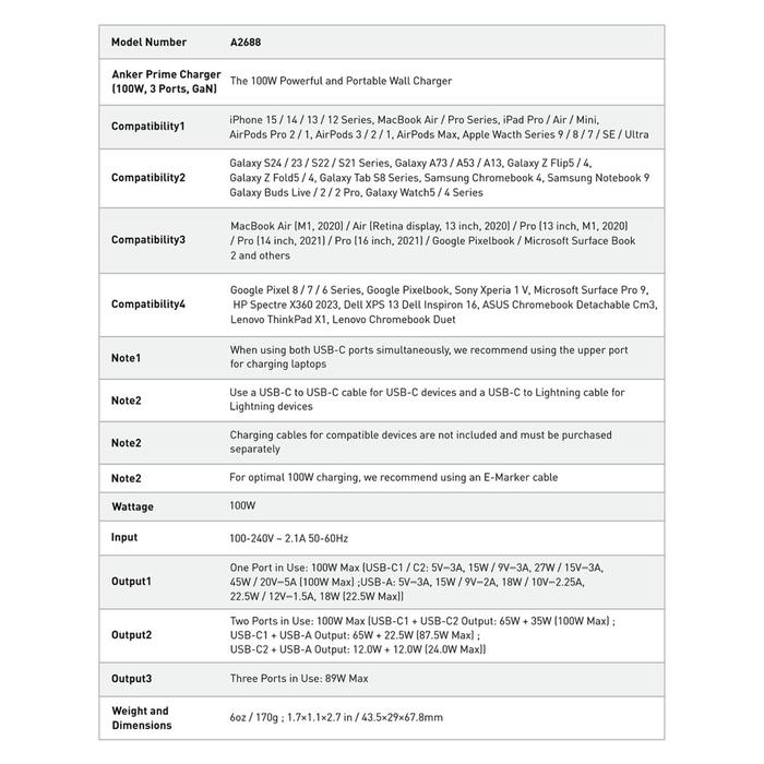 PROMO 8.8 ANKER GAN PRIME CHARGER 100W WITH USBC CHARGER 3 PORT GAN WALL CHARGER FAST CHARGING A2688