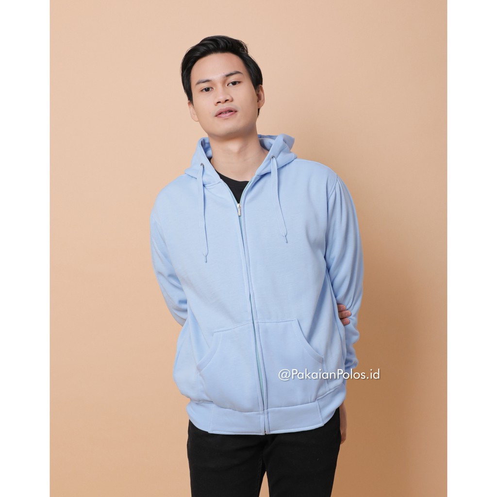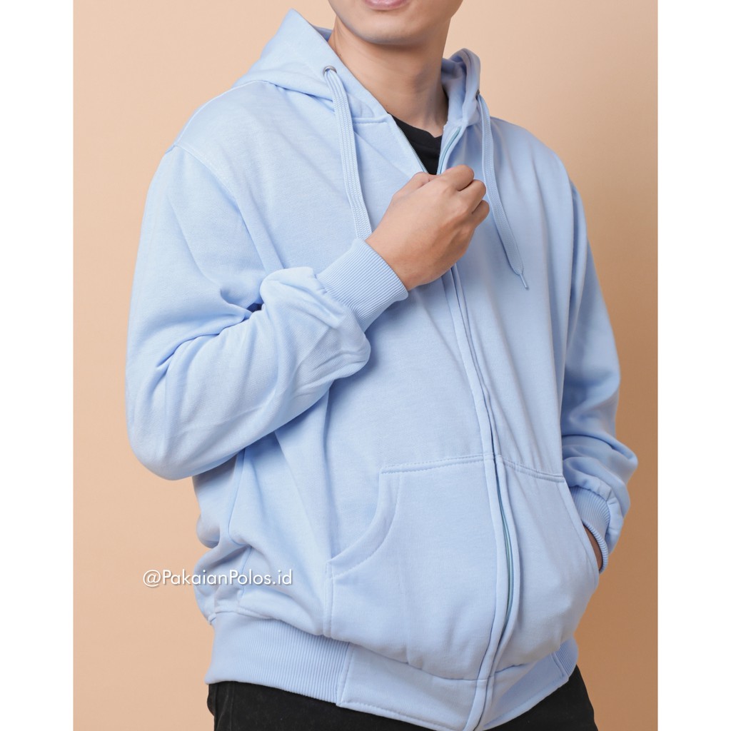 JAKET HOODIE ZIPPER POLOS BABY BLUE PRIA / WANITA PREMIUM QUALITY UNISEX (PRIA/WANITA)