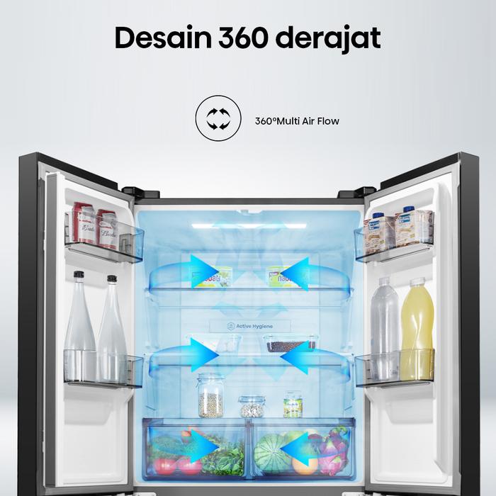 FLASH SALE HISENSERQ556N4IBUKULKAS LEMARI ES (REFRIGERATOR) 4 PINTUKAPASITAS 467LINVERTER PROFESIONAL ENERGY SAVINGBANYAKALIRAN UDARAALL ZONEACTIVE HYGIENE360° MULTI AIR FLOWCOOL FRESH BOX