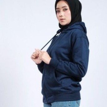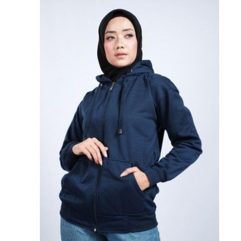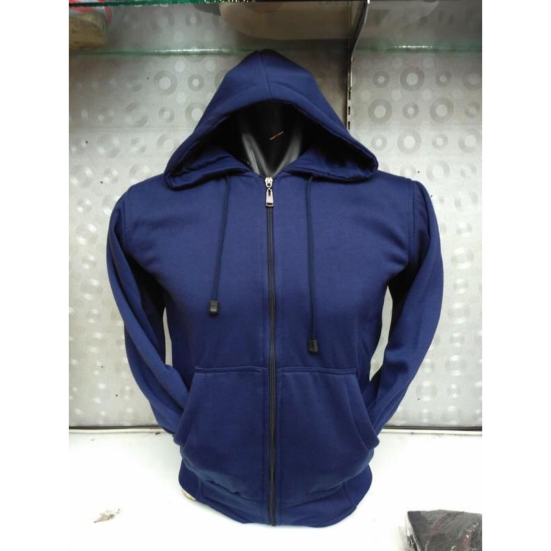 JAKET POLOS HOODIE ZIPPER NAVY RESLETING - BIRU NAVY , L