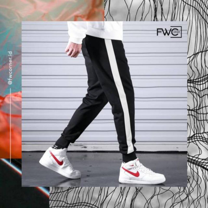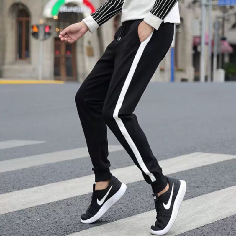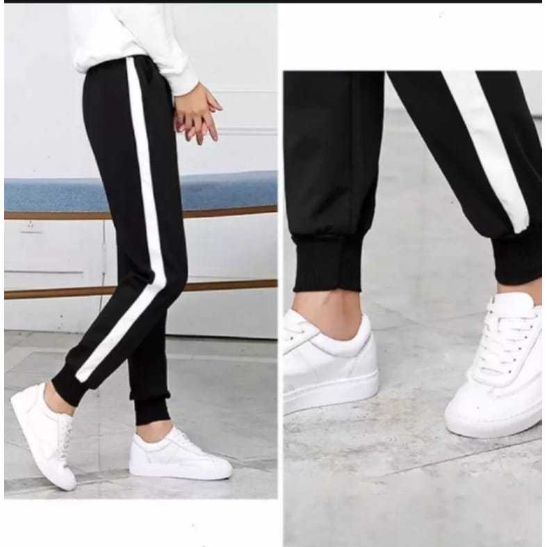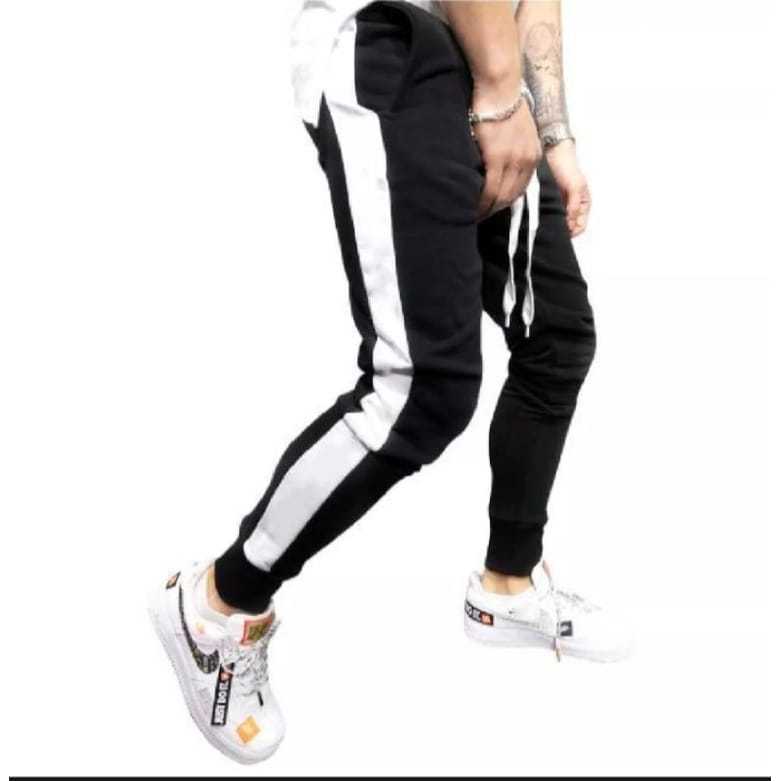 Terbaru Celana Training Jogger Pria List Putih Warna Hitam