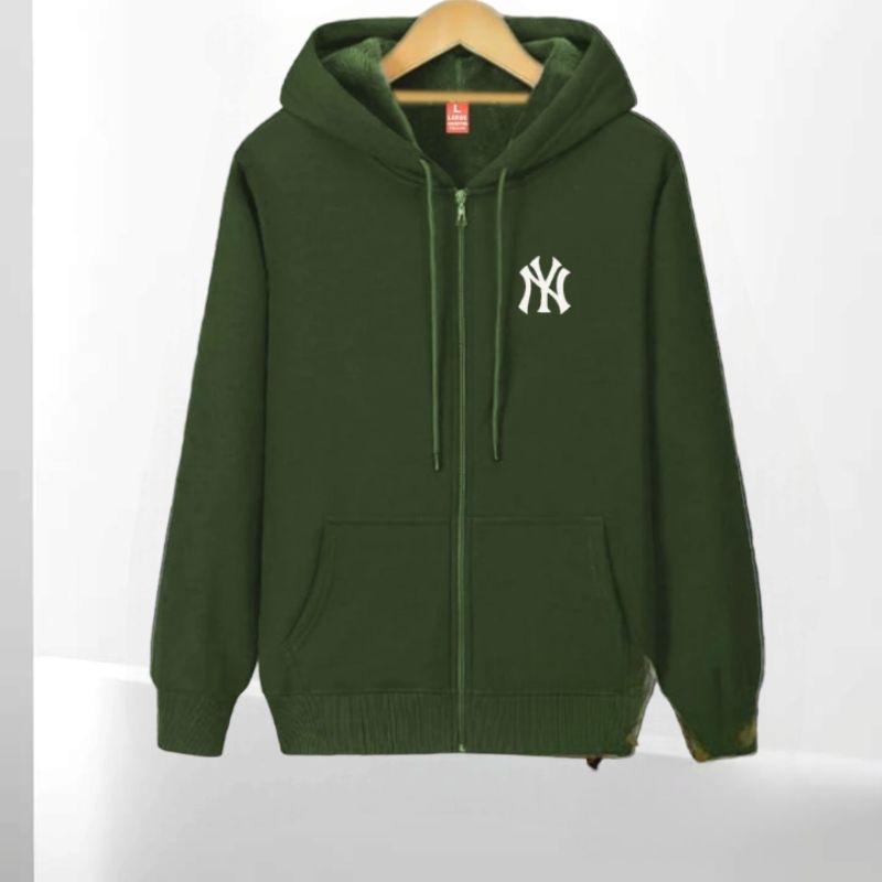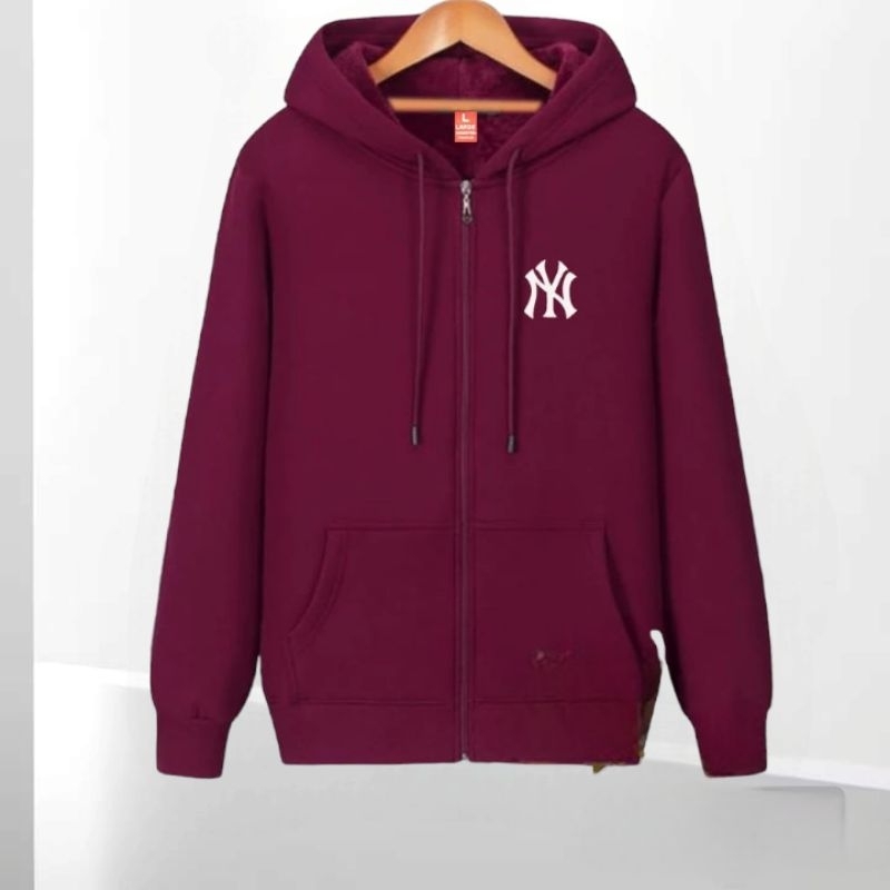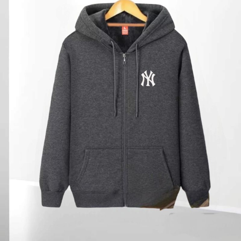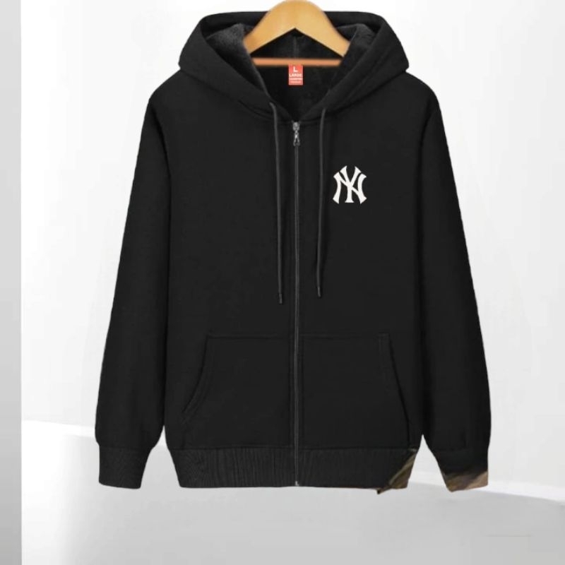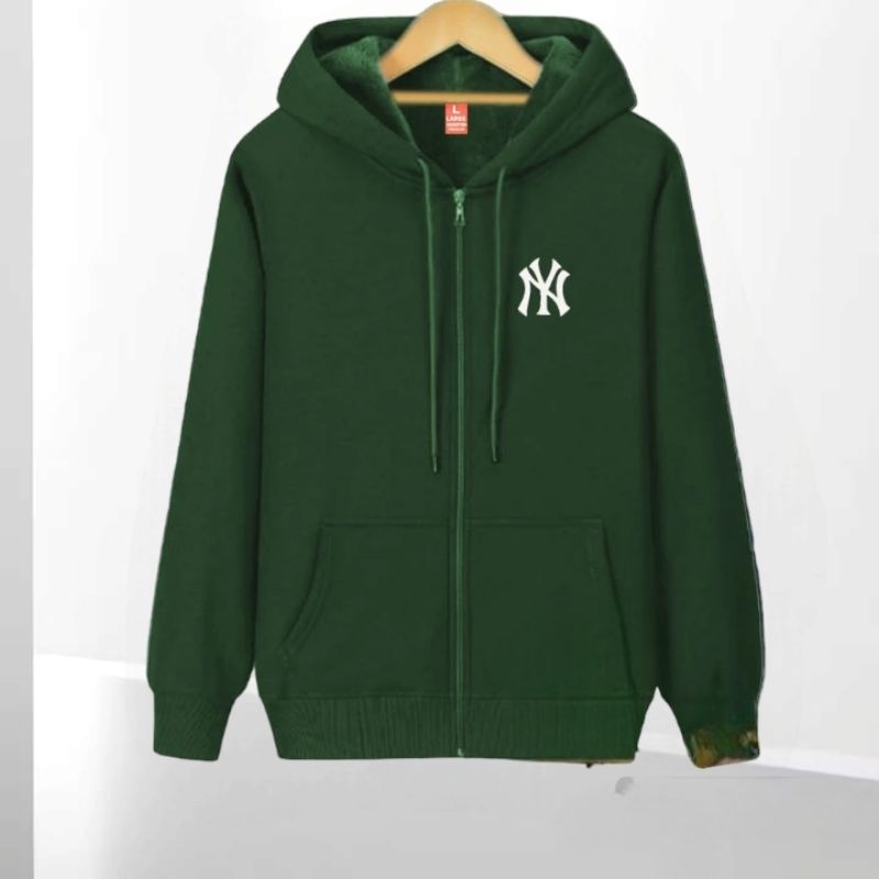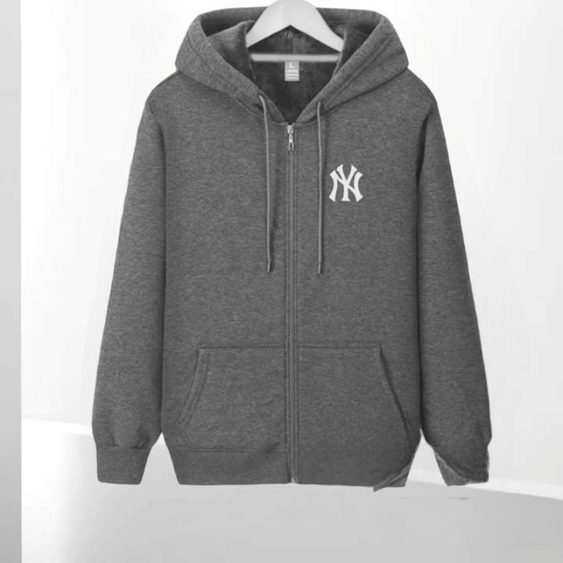SWEATER HOODIE ZIPPER PRIA JAKET DISTRO NEW YORK LOGO PUTIH SWITER COWOK KEREN JUMBO LD 120CM