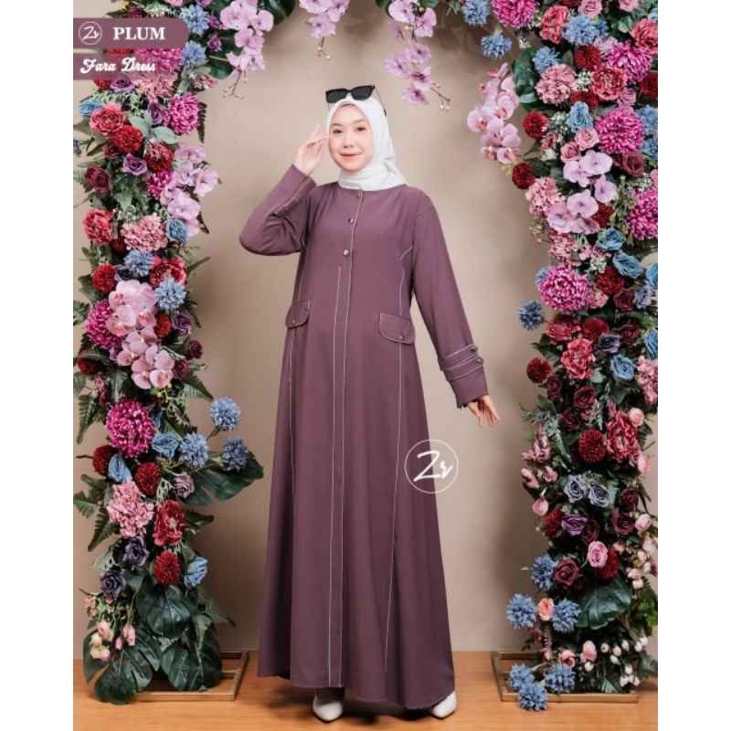 Dress FARA ANDINI SABRINA by ZR Gamis Polos Lis Model SERAGAMAN S M L XL