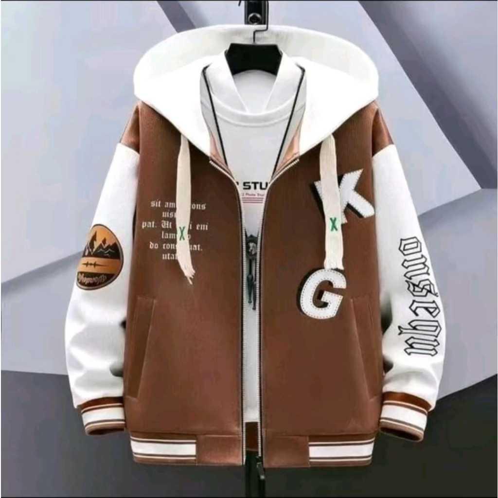 JAKET VARSITY HOODIE - JAKET ZIPER KG HOODIE BASEBALL