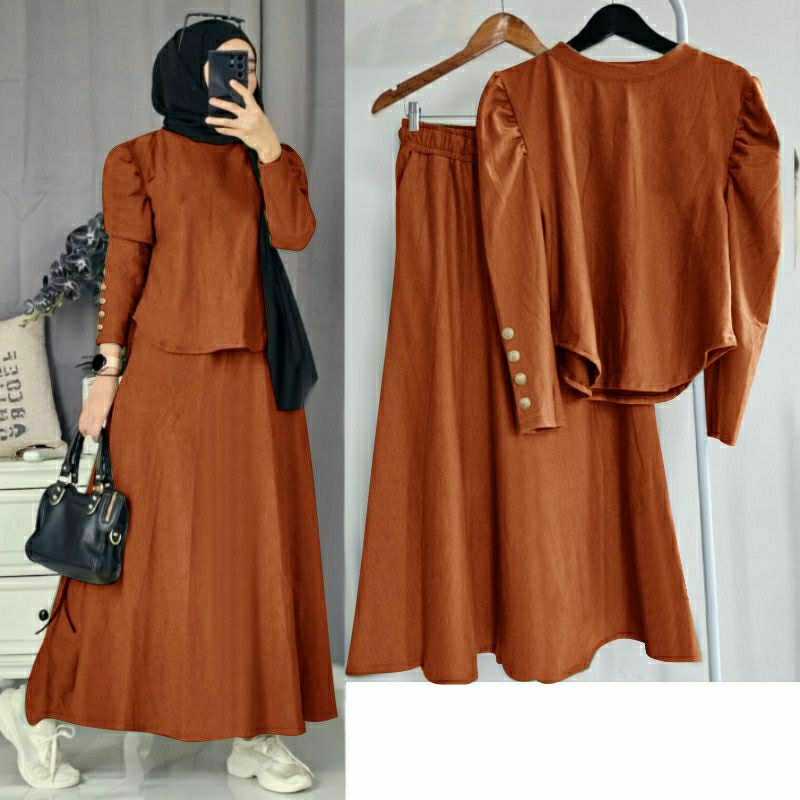 Setelan wanita set rok knit wanita fashion muslim Rajut palazo