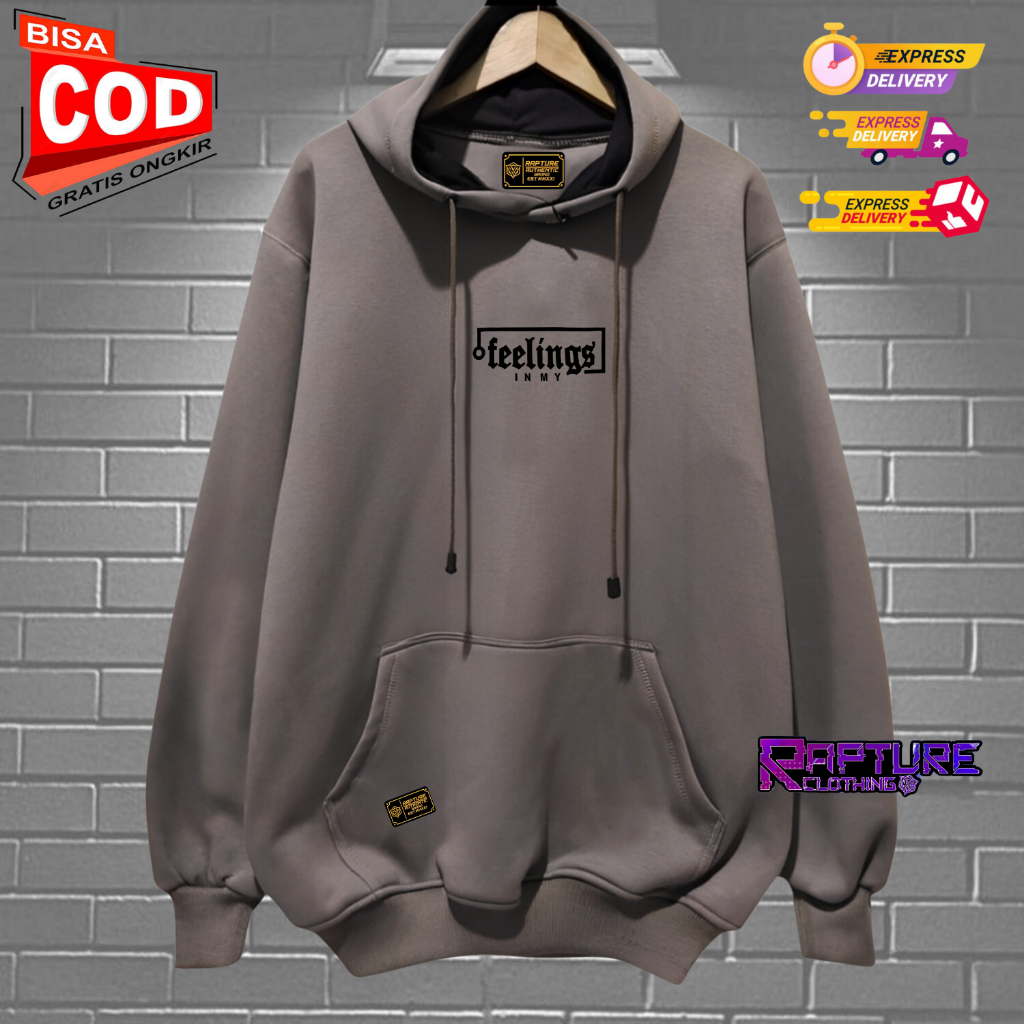 SWEATER HOODIE PRIA WANITA DISTRO OVERSIZE AESTHETIC WARNA CHARCOAL LIST SABLON FEELINGS JAKET SWITER HUDIE COWOK CEWEK KEKINIAN BAHAN FLEECE TEBAL BRNAD LOKAL BANDUNG