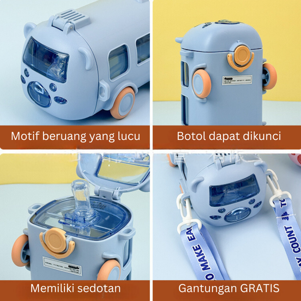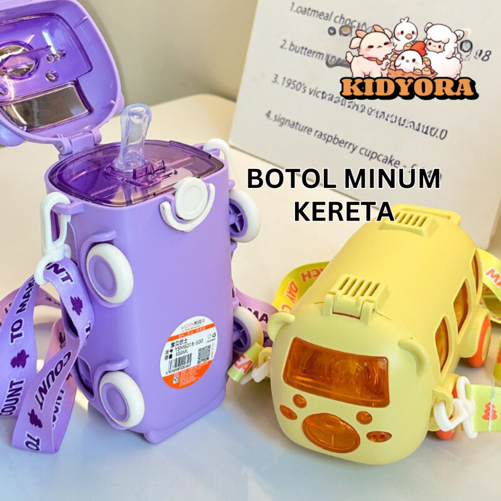 KIDYORA BOTOL TEMPAT MINUM ANAK SEKOLAH LAKI LAKI PEREMPUAN BENTUK MOTIF MAINAN MINI BUS MOBIL 500ML