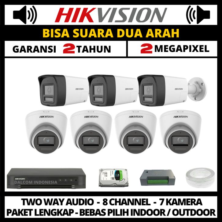 PAKET CCTV HIKVISION 2MP 8 CHANNEL 7 CAMERA TWO WAY AUDIO