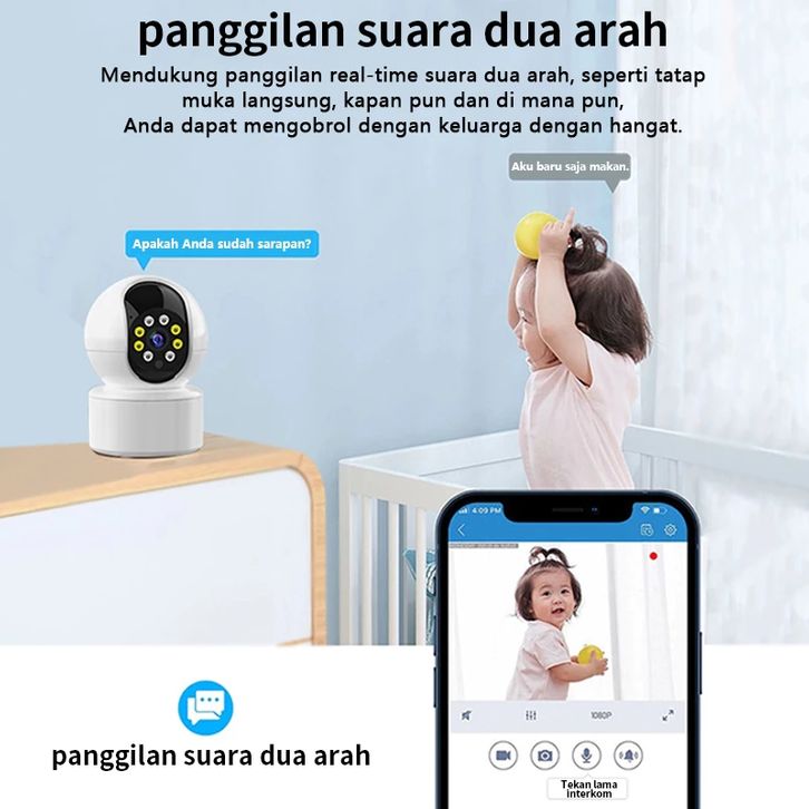 HNF CCTV Kamera 2K WiFi Jarak Jauh - 360° PTZ, AI Deteksi Manusia + Night Vision Inframerah, Video Call 2 Arah
