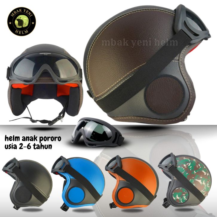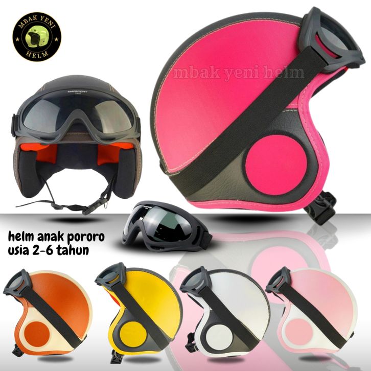 Helm Anak Pororo Usia 2-6 Tahun Polos Free Kacamata SKY