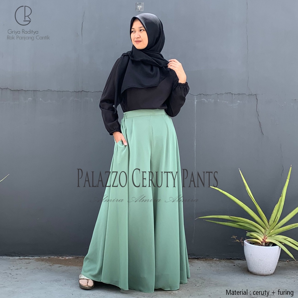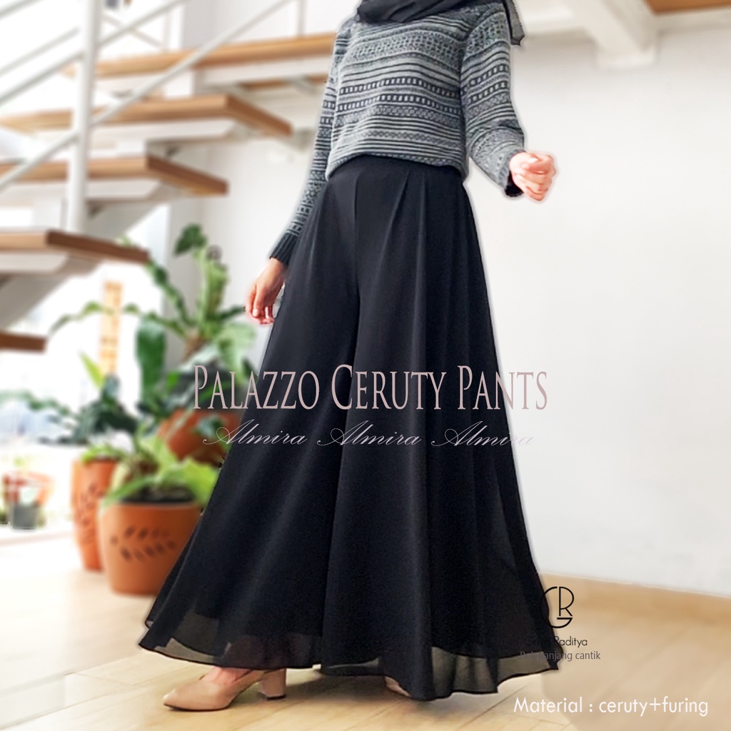 Celana Kulot Wanita Panjang Muslimah Palazzo Sifon Chiffon Ceruty Pants Almira