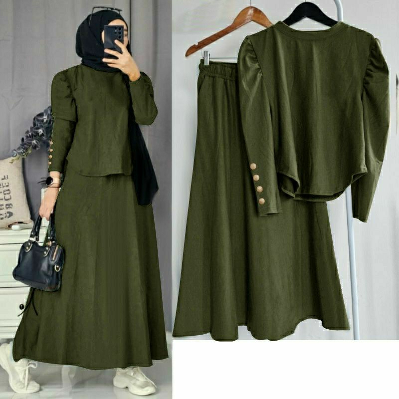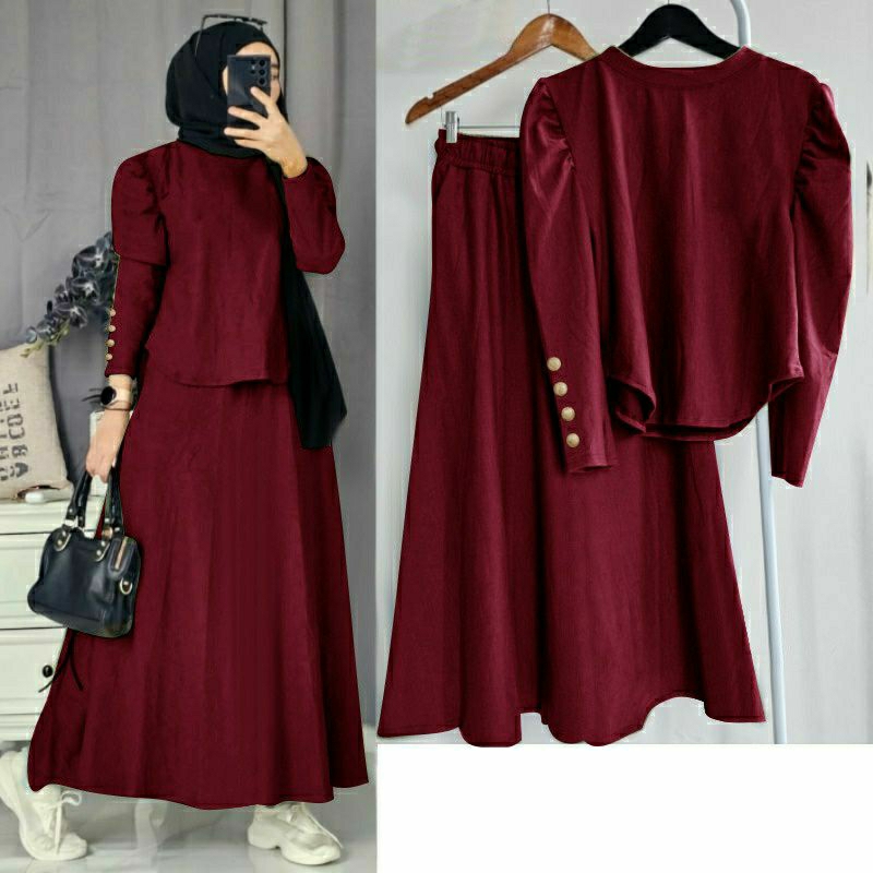 Setelan Rok Wanita Terbaru Bahan Knit Set Rok Panjang Muslim Wanita Palazo