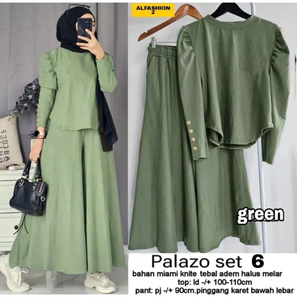 PALAZO SET KNIT PREMIUM TANGAN BALON / PALAZO SETELAN POLOS / ONE SET CELANA KLULOT / SETELAN WANITA