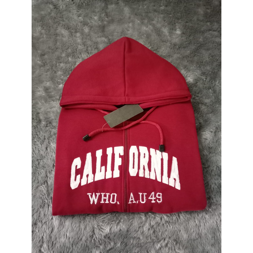 JAKET HOODIE WHO.AU CALIFORNIA ABU ZIPPER JAKET HOODIE STM PRIA WANITA TEKS PULL BORDIR PREMIUM QUALITY