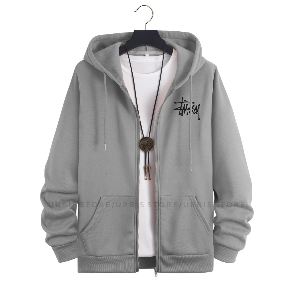 JAKET HOODIE ZIPPER PRIA WANITA SIZE M - XXL MOTIF SABLON STUSSY BAHAN FLEECE TEBAL PREMIUM