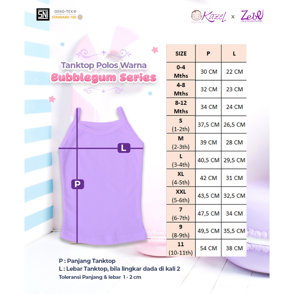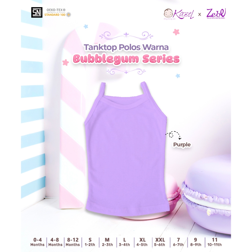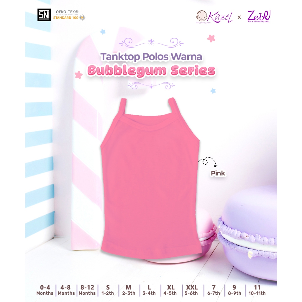 KAZEL Zebe Tanktop Polos Warna Bubblegum Series (6Pcs/12Pcs) 0-11Thn