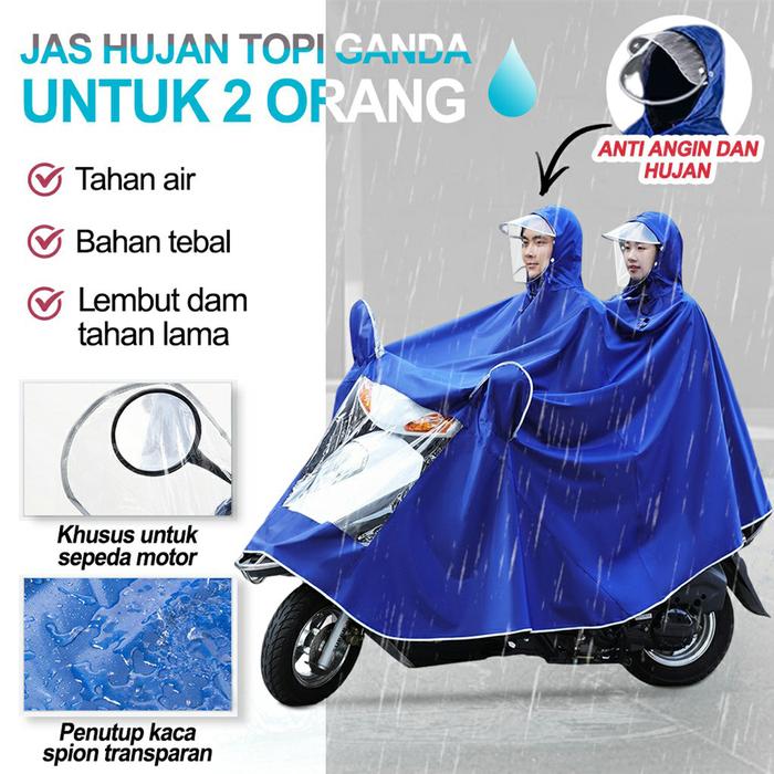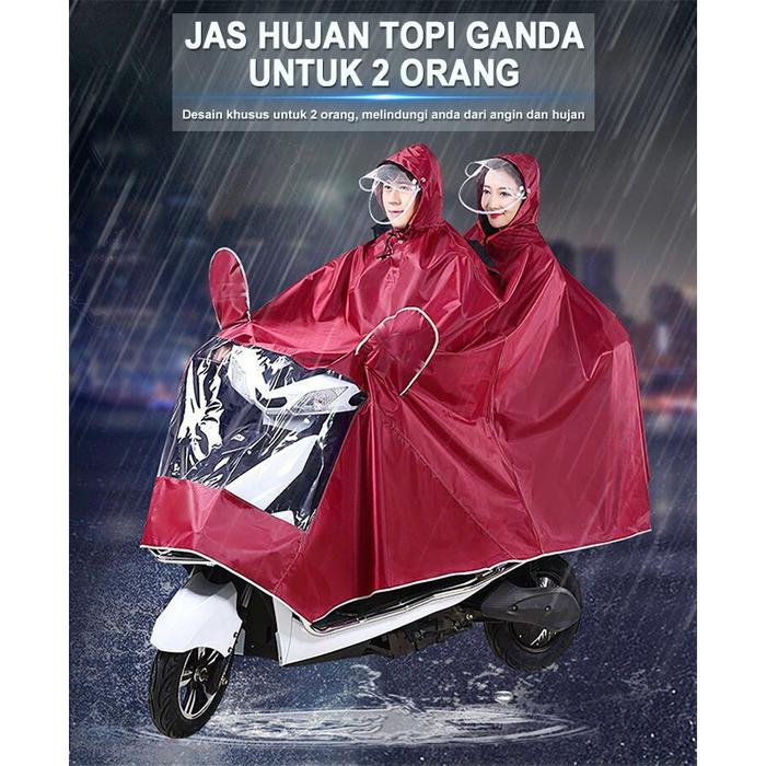 PROMO 8.8 JAS HUJAN TOPI GANDA UNTUK 2 ORANGJAS HUJAN MOTOR2 KEPALA FULL COVER MOTOR RAINCOAT BIRU MERAH 1 ORANGUNGU