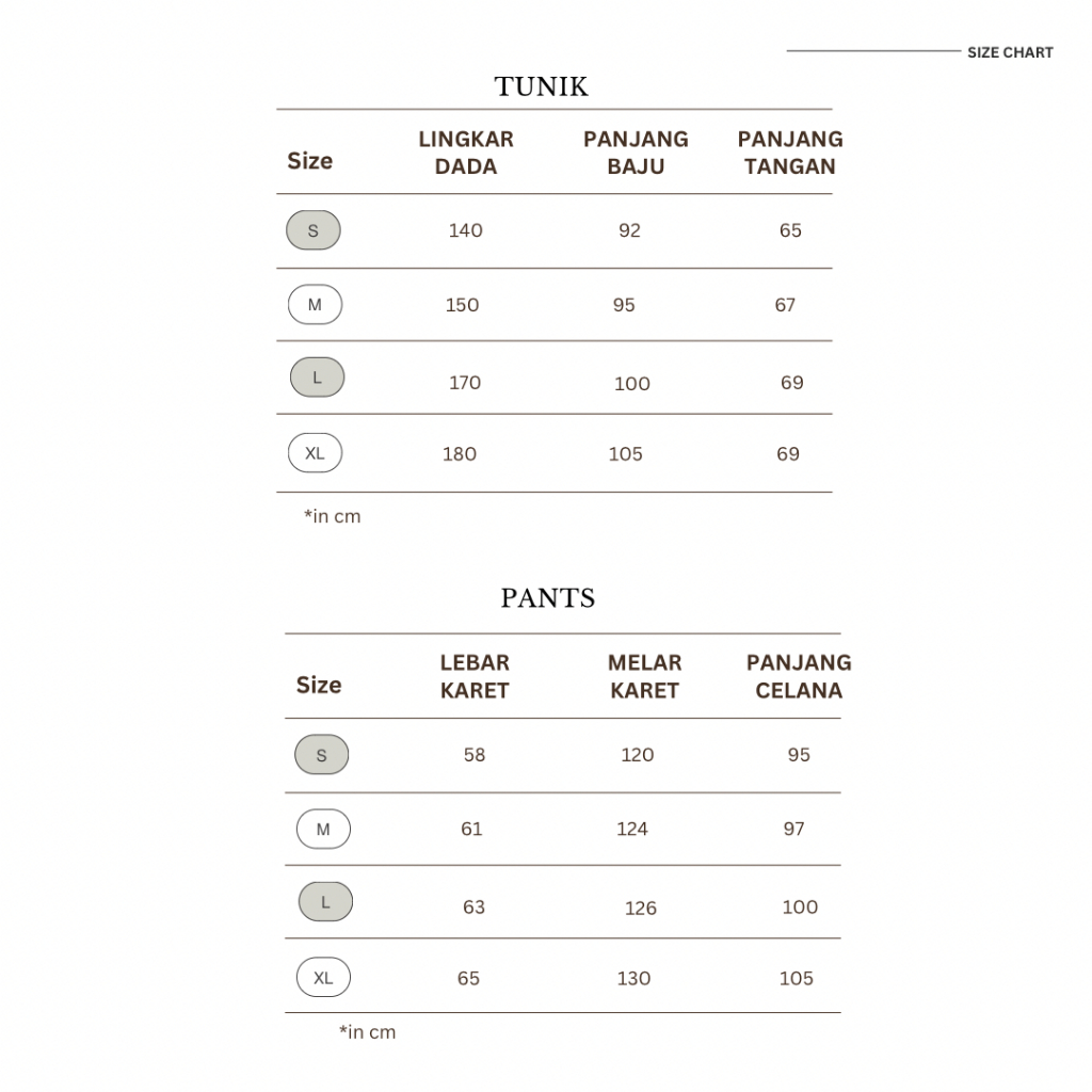 S, M, L, XL