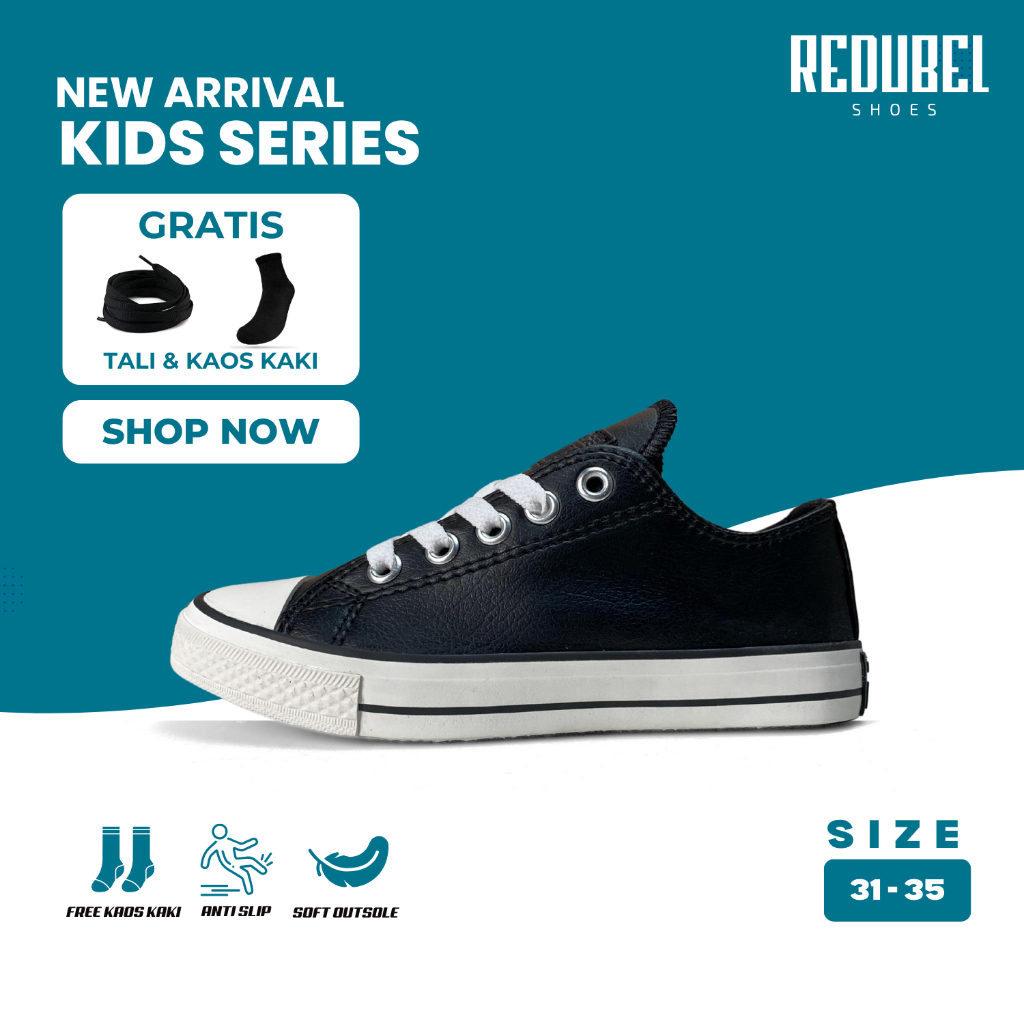 Sepatu Anak Converse Low Kids Black White - Sepatu Sneakers Casual Anak Pria & Wanita Sepatu Sekolah