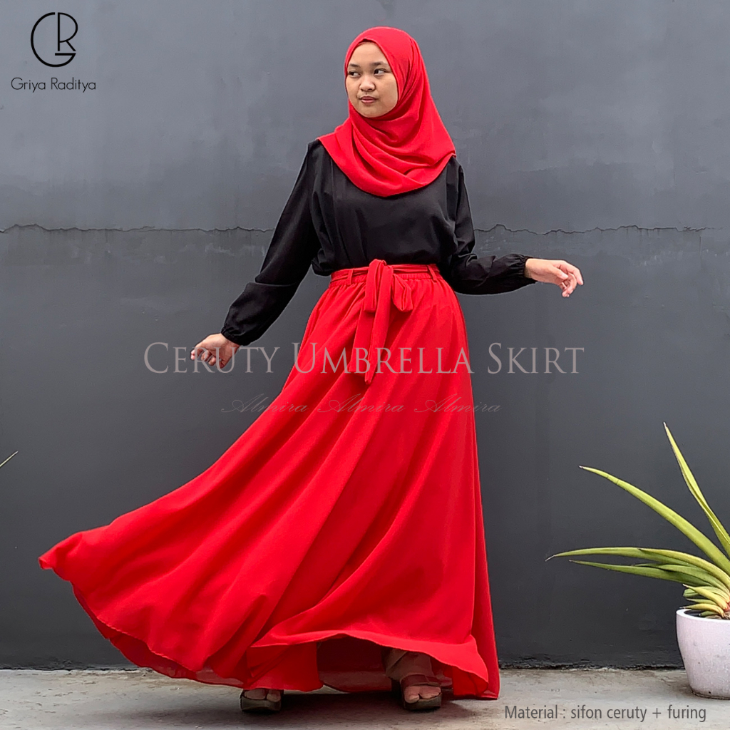 Rok Panjang Wanita Payung Muslimah Sifon Chiffon Ceruti Umbrella Skirt Griyaraditya 23 Warna